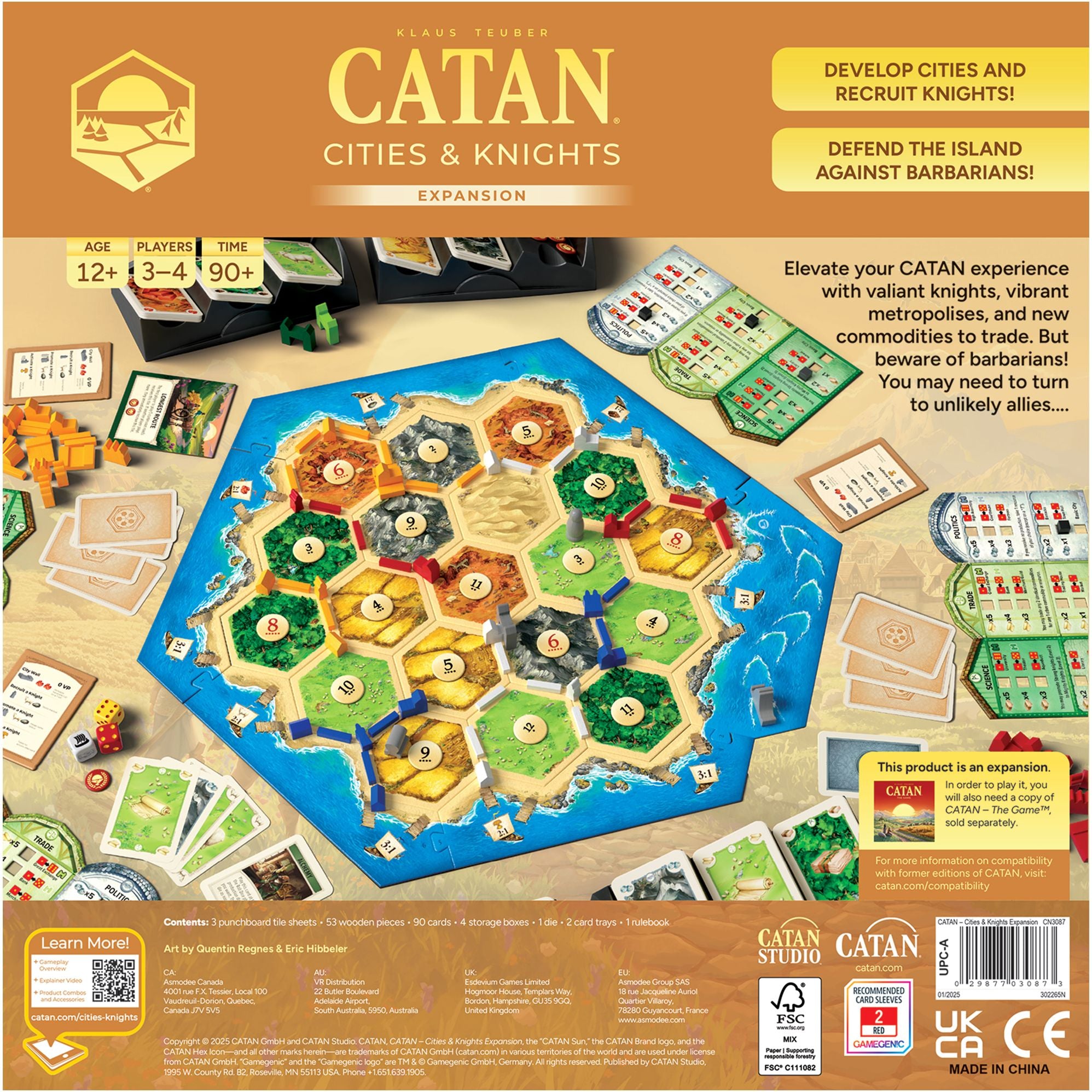 Trouble is brewing off the shores of Catan. Though your thriving communities have begun to grow into majestic cities, your success and wealth have caught the attention of marauding invaders. To ensure the collective security of the island, you must stand together and muster and army of the bravest knights. Maintaining an army while also advancing your society is no simple task, but the greatest leaders thrive on a good challenge. Huzzah!