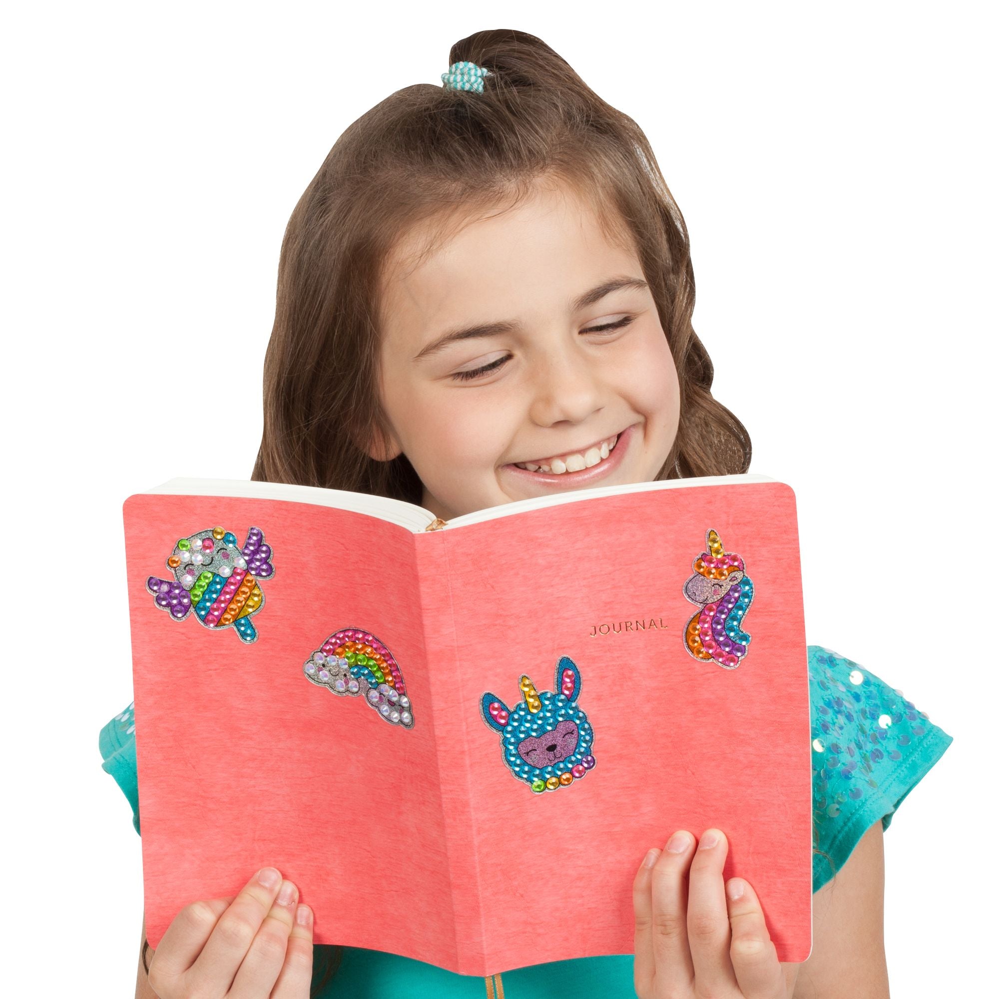 Diamond painting made simple! Developed for kids and beginners, larger gems and adorable designs make this activity easy and fun to do. No glue needed. Just peel the clear cover off of your designs to reveal adhesive, then use the stylus to pick up and place the colorful gems on magical unicorn theme designs. Enjoy two diamond painting activities in one kit. 12 holographic stickers include printed dots for guided gem placement while 2 sun catchers offer an open-ended experience encouraging you to add spark to your way. Both suncatchers include two ways to display - suctions cup hooks for hanging or stands. Apply your shimmering stickers to journals, cards, lunch bags, bookmarks, notebooks, folders, pencil cases and so much moreFor Ages: 6+WARNING: Choking Hazard, Small Parts. Not for Children Under 3 Years Old.