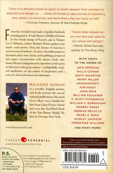 The Orchid Thief meets Botany of Desire meets Driving Einstein's Brain in Richard Horan's Seeds, the chronicle of one man's quest to understand the influence and impact of trees in American life and literature—and his mission to collect seeds from the homes of Kerouac, Welty, Wharton, Kesey and twenty other authors, to preserve the literary legacy of American forests for generations to come.