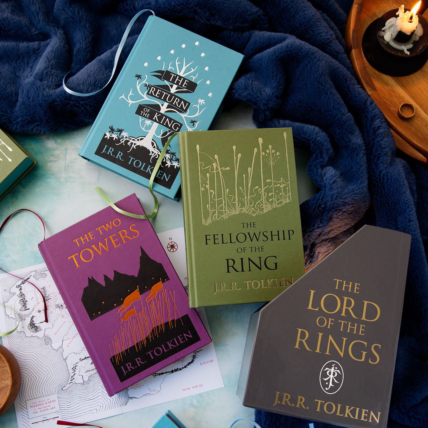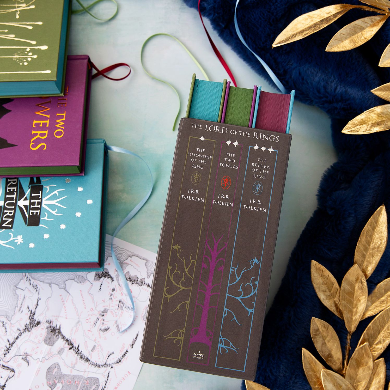 A special hardcover box set of J.R.R. Tolkien’s epic masterpiece, including three new collector’s editions of The Fellowship of the Ring, The Two Towers, and The Return of the King, with sumptuous cover designs, foil stamping, stained edges, ribbon bookmark, and an exclusive fold-out map of Middle-earth.