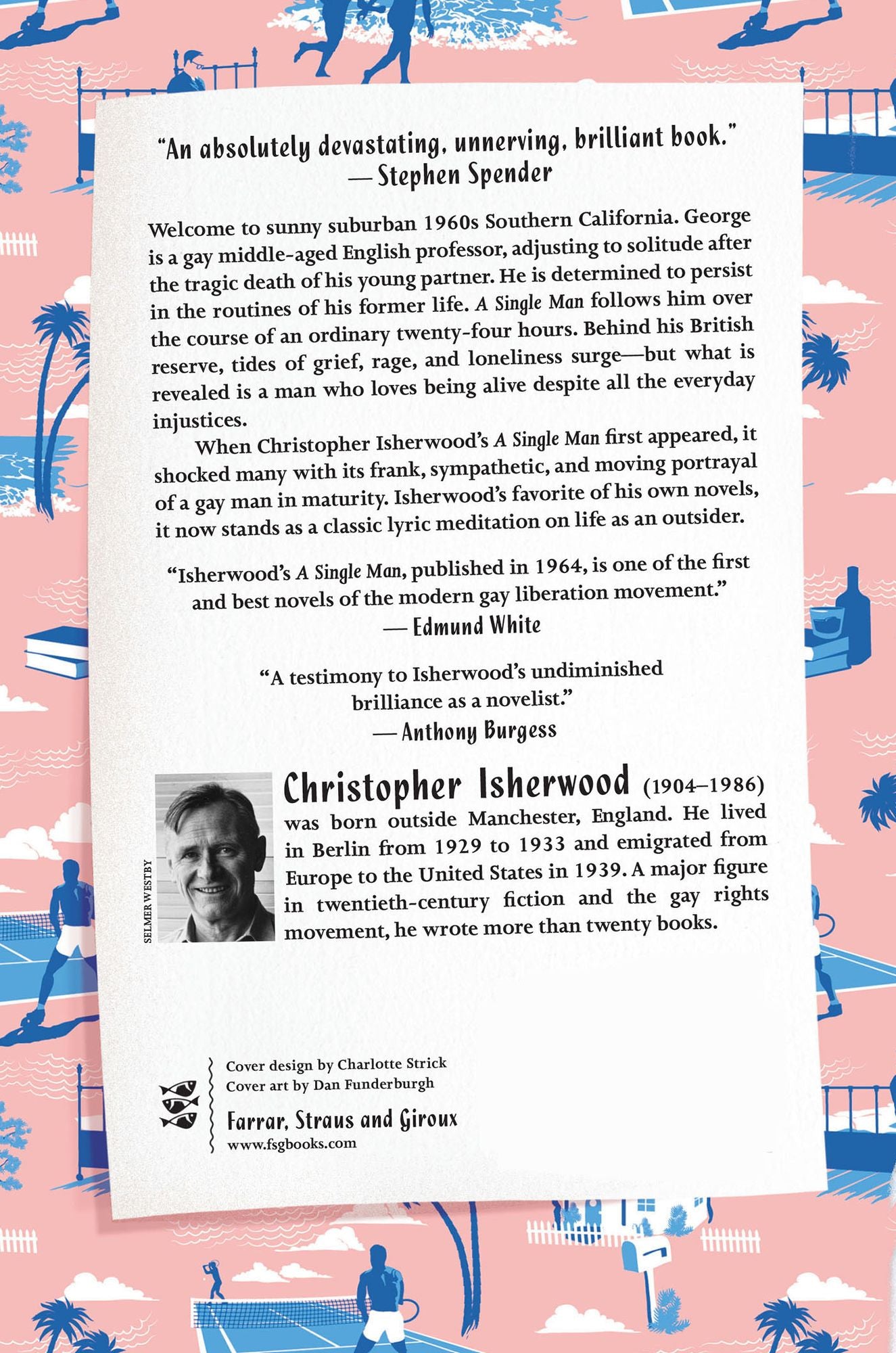 When Christopher Isherwood's A Single Man first appeared, it shocked many with its frank, sympathetic, and moving portrayal of a gay man in maturity. Isherwood's favorite of his own novels, it now stands as a classic lyric meditation on life as an outsider.
