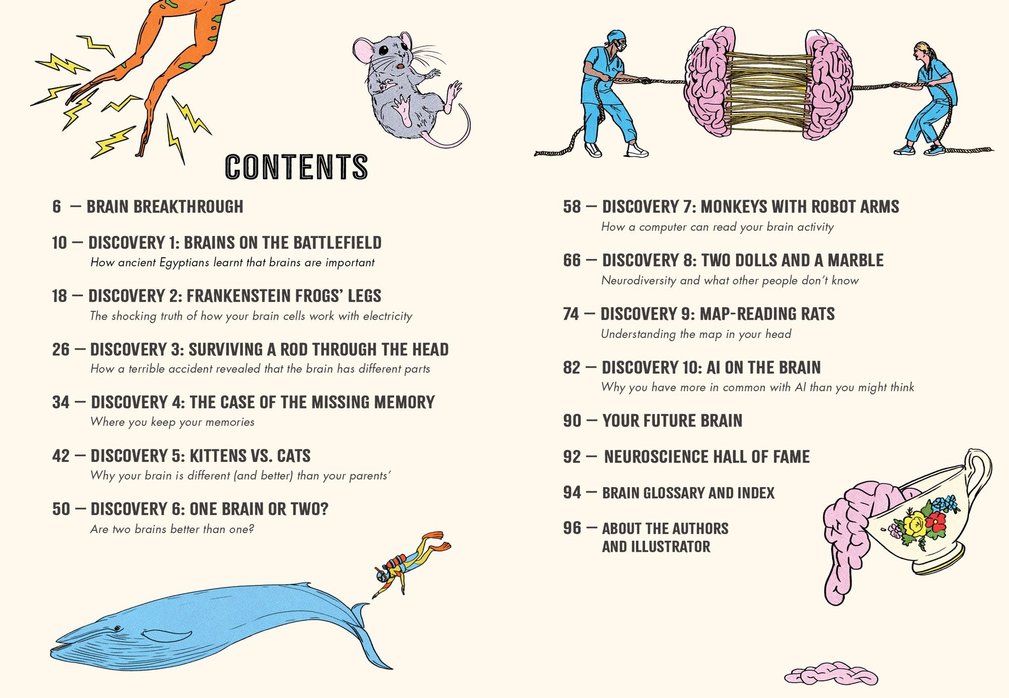 The ancient Egyptians discovered in battle that the brain was more important than they'd thought; Luigi Galvani sent electric shocks through dead frogs' legs and uncovered how brain cells work; Phineas Gage's unfortunate accident on the railroads revealed that you can survive a metal rod through the head, while some unwitting kittens helped us understand how our brain develops.