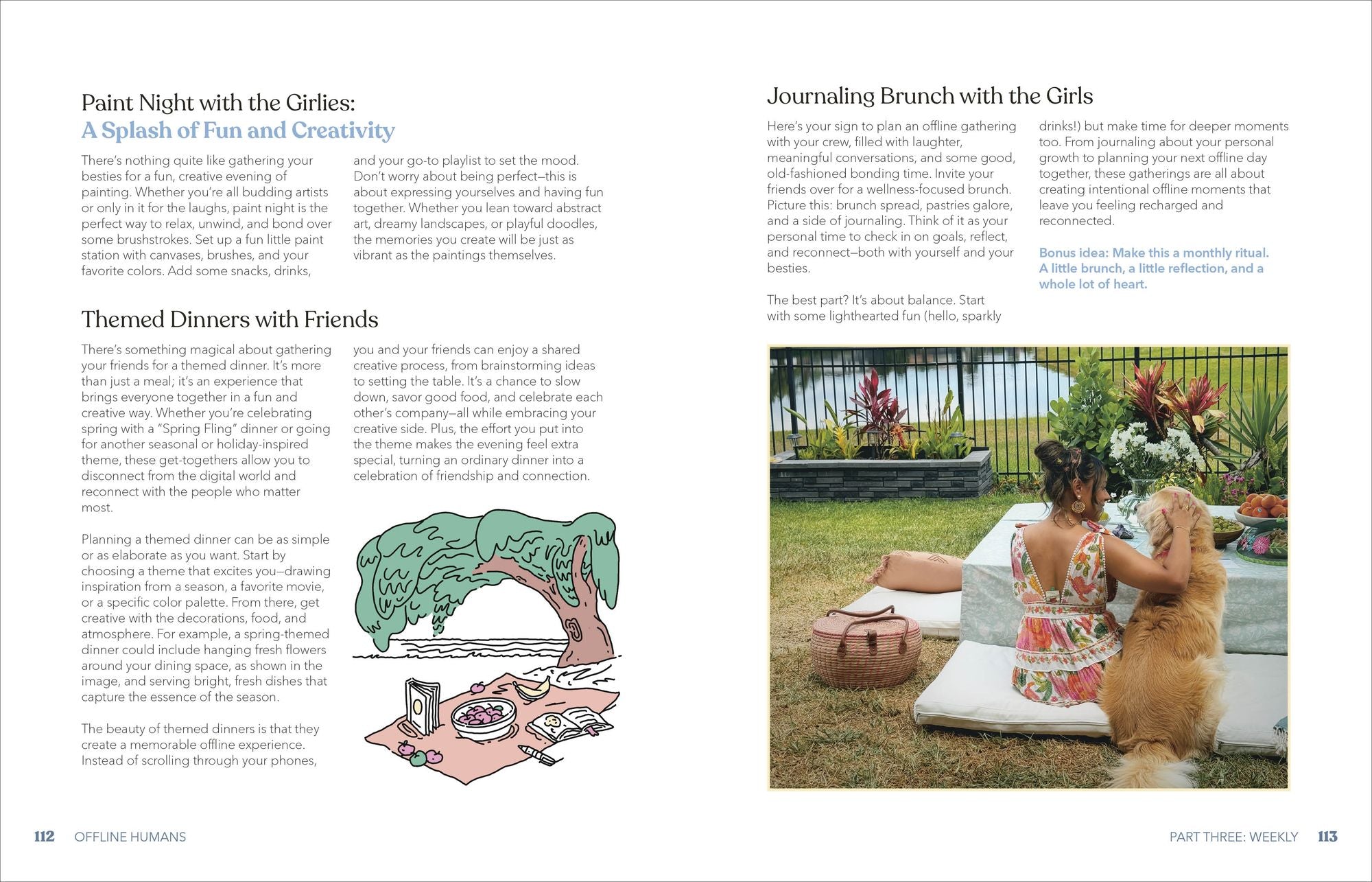 In Offline Humans, writer and creator Natalie Alzate invites you to stop the endless doom scroll and find joy in the physical world, where you can reconnect with what truly matters. Her strategic, day-by-day approach guides you to gradually reduce time spent online through journaling prompts, thought-provoking exercises, and creative suggestions for offline activities.