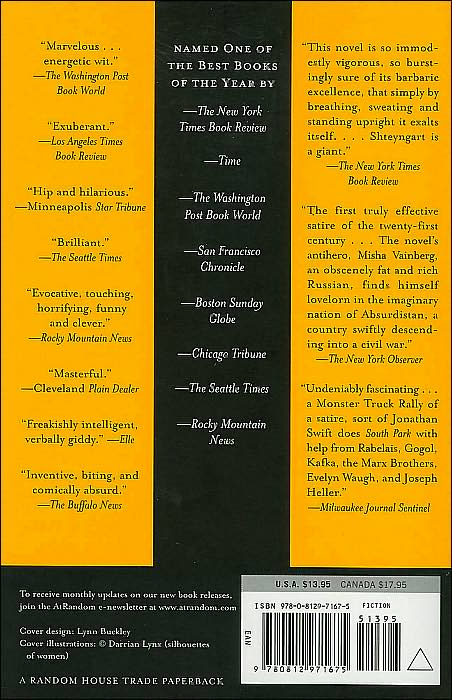 “Absurdistan is not just a hilarious novel, but a record of a particular peak in the history of human folly. No one is more capable of dealing with the transition from the hell of socialism to the hell of capitalism in Eastern Europe than Shteyngart, the great-great grandson of one Nikolai Gogol and the funniest foreigner alive.”