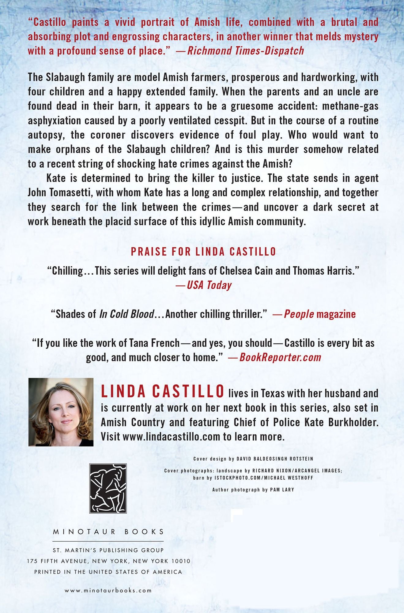 Having grown up Amish, Kate is determined to bring the killer to justice. Because the other series of attacks are designated hate crimes, the state sends in agent John Tomasetti, with whom Kate has a long and complex relationship. Together, they search for the link between the crimes—and uncover a dark secret at work beneath the placid surface of this idyllic Amish community.