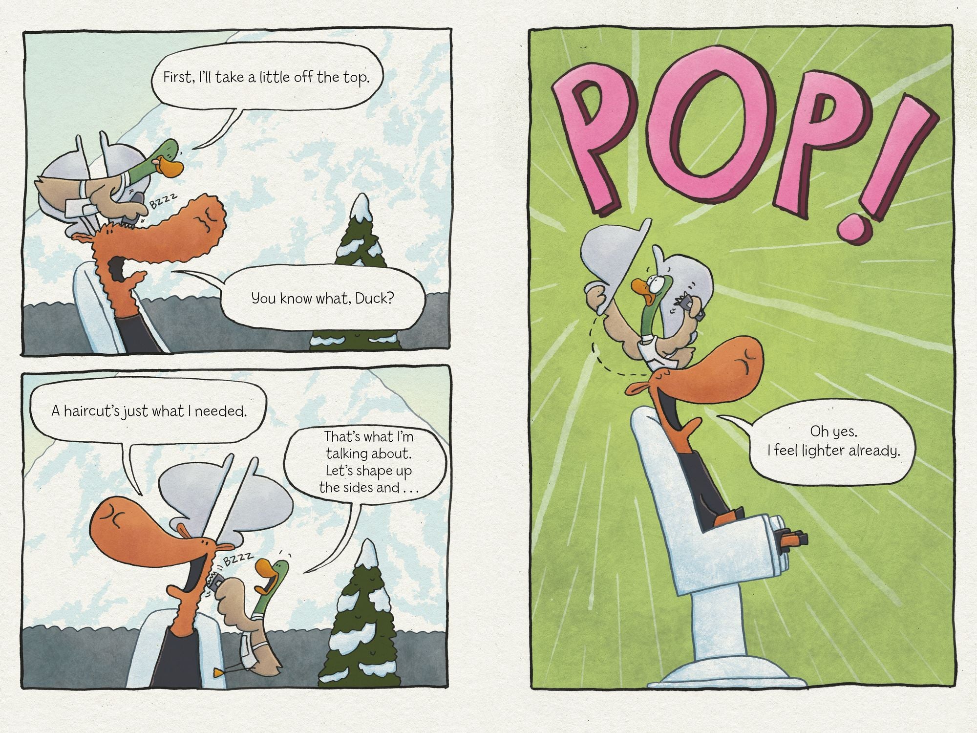 Moose is having a bad hair day, so Duck offers to give his pal a haircut. Everything is going smoothly until—POP!—one of Moose’s antlers comes off mid-trim! Duck desperately tries to reattach it without Moose noticing, but nothing works, not even disguising the antler as Duck’s long-lost cousin! Can Duck find a way to fix his mistake without upsetting Moose?
