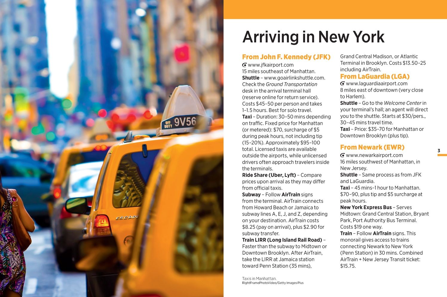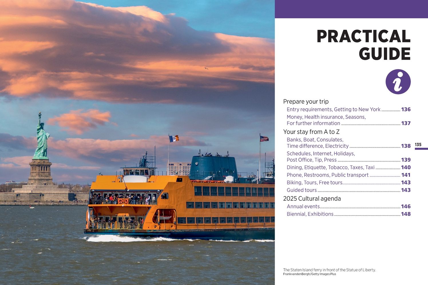 - section covering practical topics such as when to go, things to know before departure, and tips when traveling around town