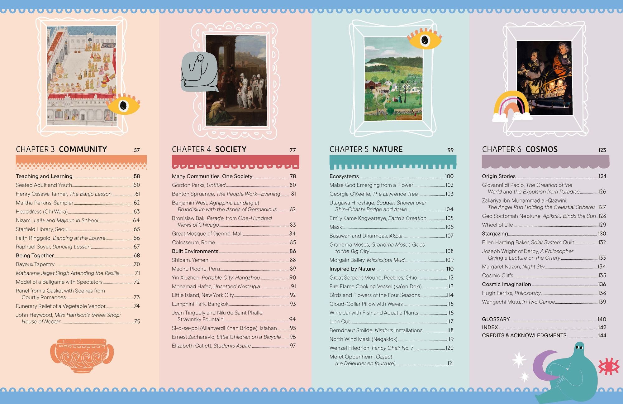 Art All Around includes thoughtfully chosen works from a variety of mediums, including photography, metalwork, pottery, textiles, furniture, and architecture, in addition to traditional paintings and sculpture. Each chapter features art objects from across different cultures and time periods to emphasize their thematic, stylistic, or functional commonalities within a wider web of global art production and ends with an activity page that enables readers to engage with the themes and objects more directly.