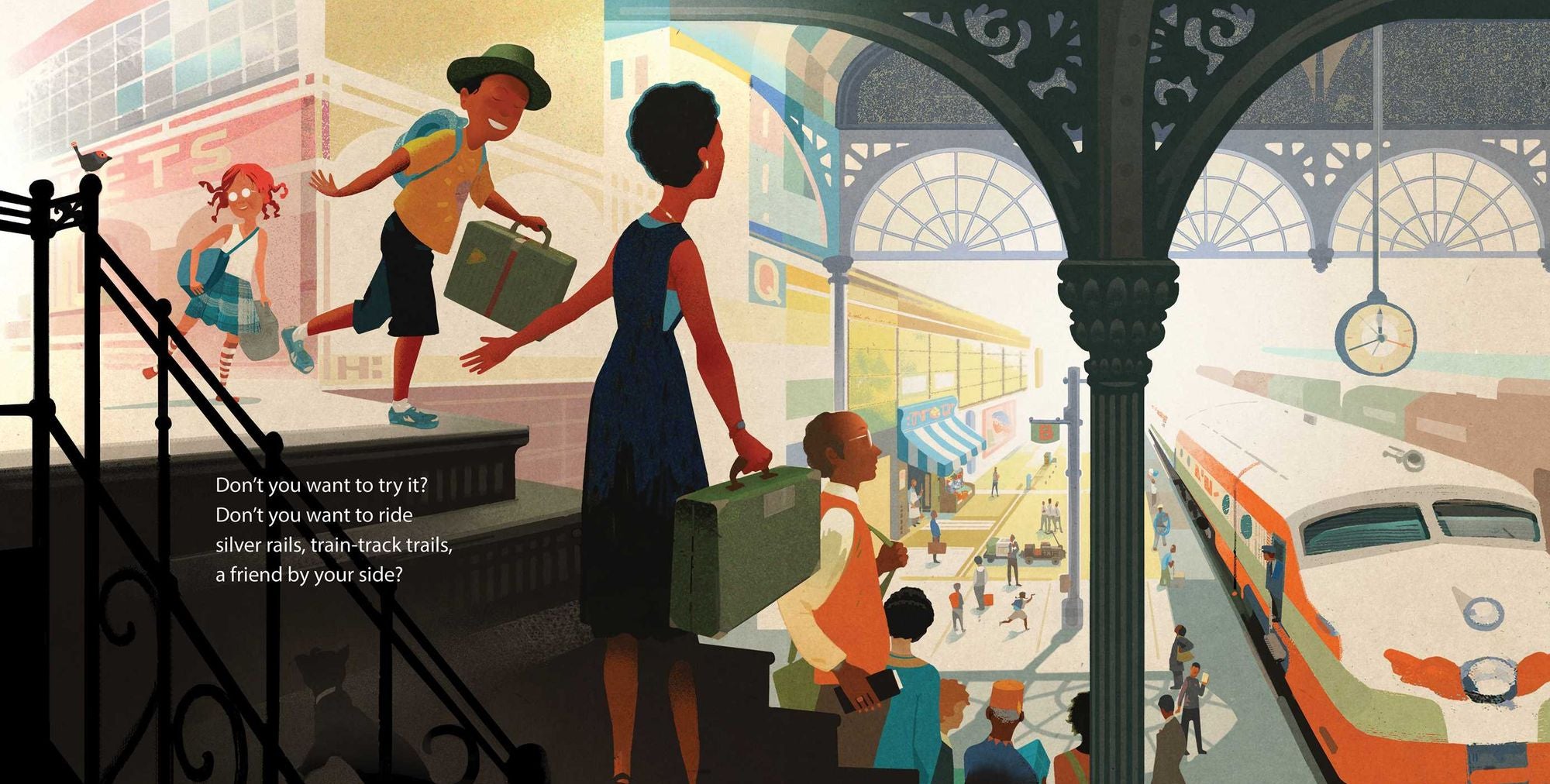 We’ve already learned that trucks roll, planes fly, and boats float. Now, all aboard for the fourth book in George Ella Lyon’s transportation series, and this time learn all about trains!