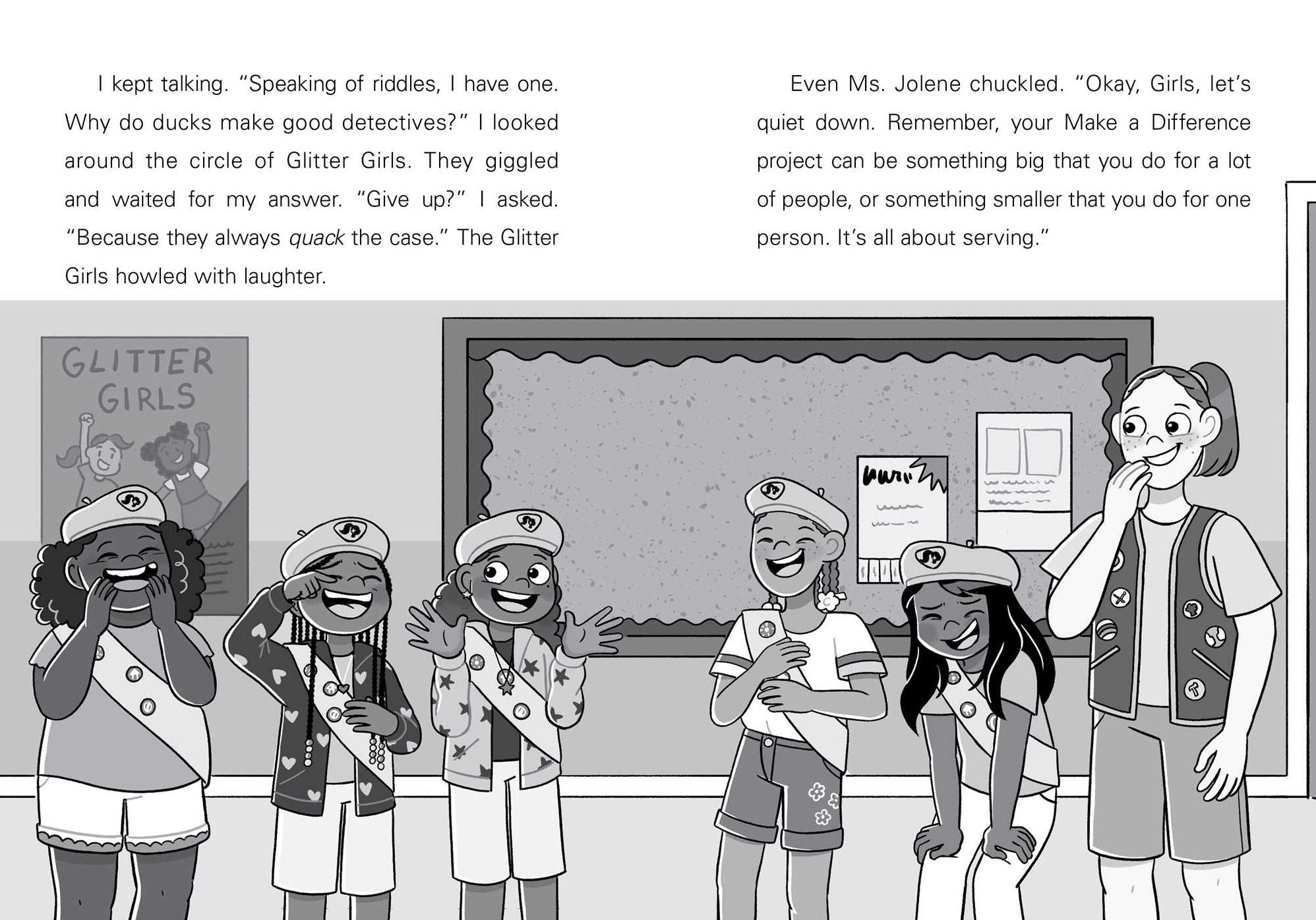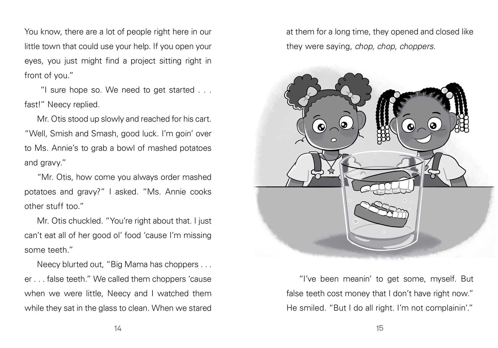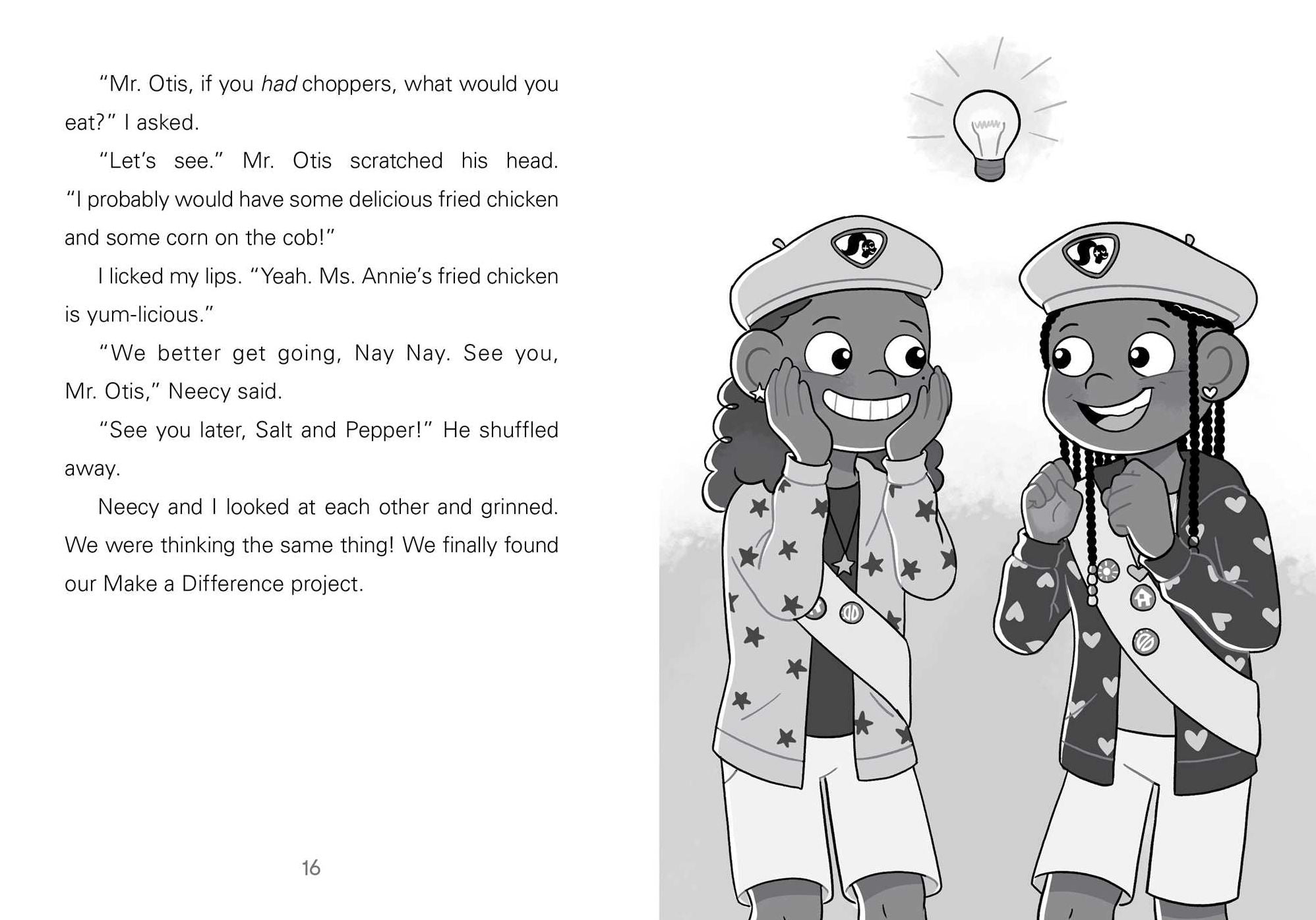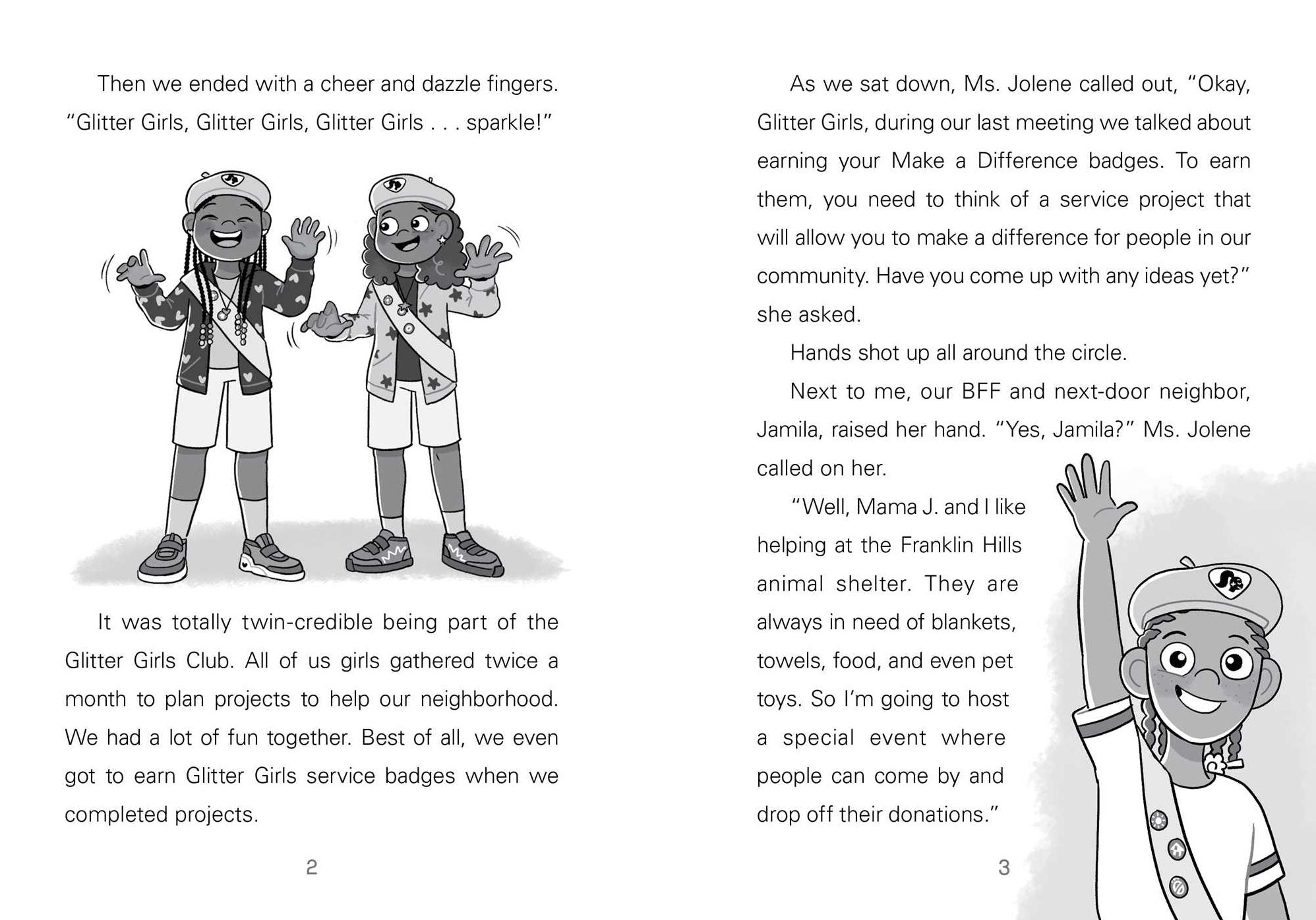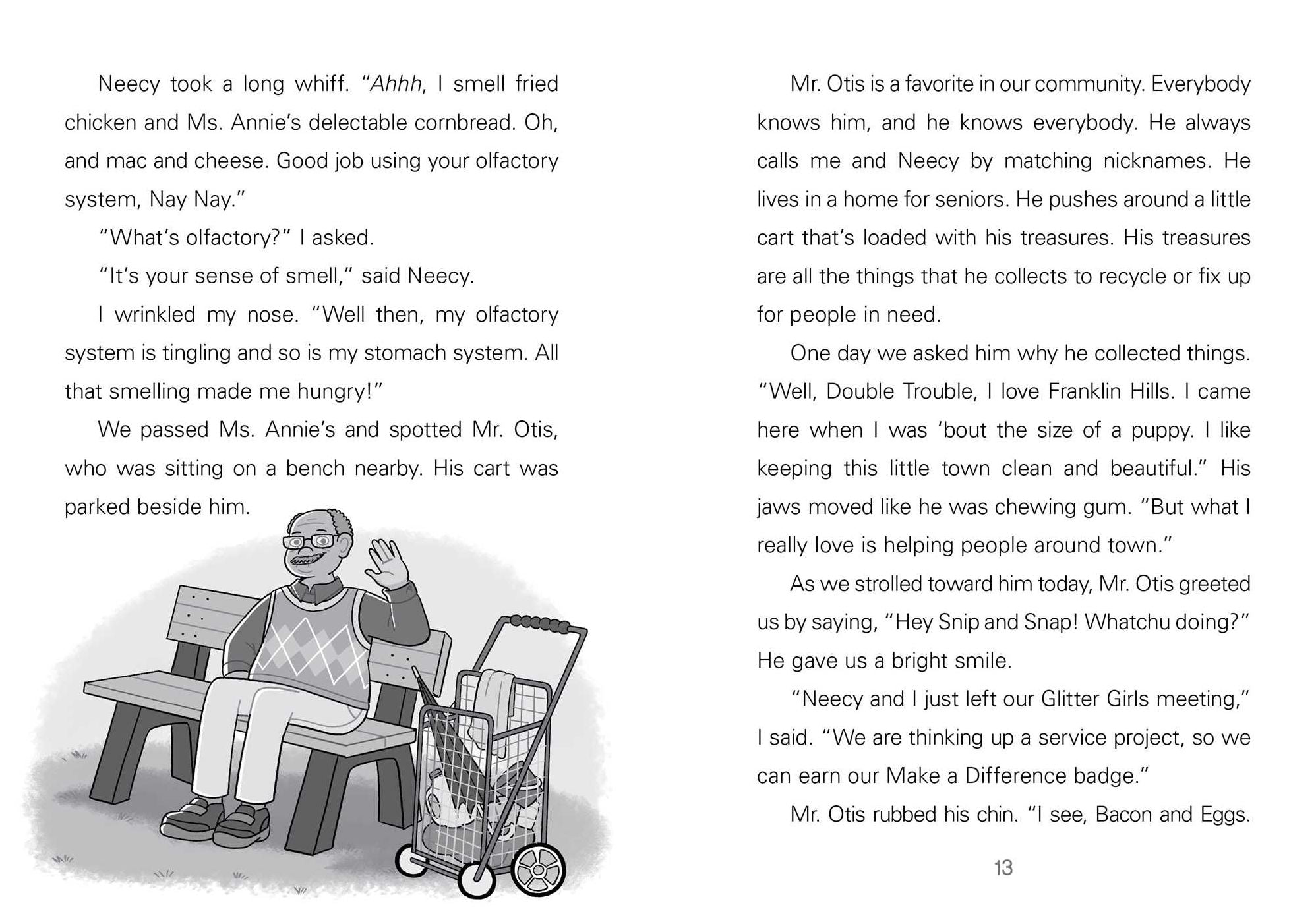 Neecy and Nay Nay love being part of the Glitter Girls Club. This month, the girls are working toward earning their Make a Difference badges. The twins want to help local resident Mr. Otis by getting him a new pair of dentures so he can enjoy all his favorite foods. But raising money is not as easy as looking under couch cushions! Will Neecy and Nay Nay be able to make a difference for Mr. Otis and earn their badges?