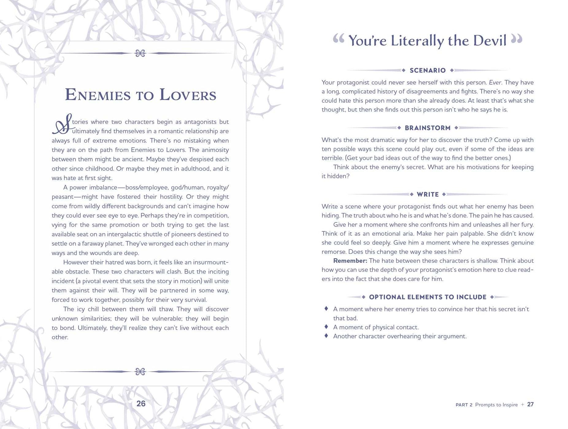 This book guides writers through the tropes and themes that exist within the romantasy genre, then provides prompts that will not only engage the writer’s creativity, but they will also aid in beating writer’s block, spark ideas for uncharted possibilities, and offer fresh perspectives to outdated tropes.