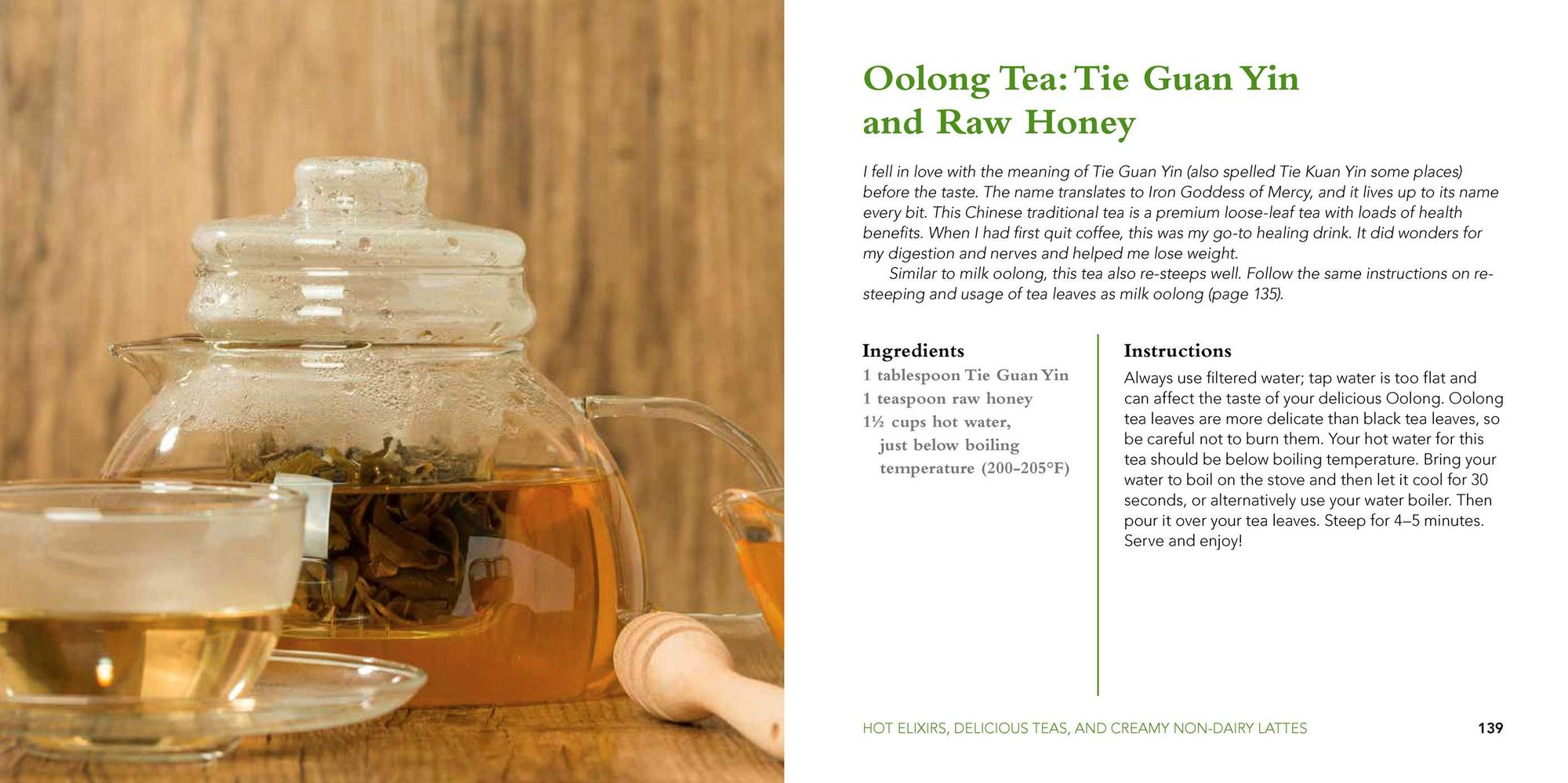 Coffee, "Milk", and Oats Smoothie Creamy Tangy Zucchini, Pineapple, and Avocado Smoothie Sweet Potato and Almond Milk Blast Smoothie Fennel, Grape, Pear, and Kale Juice Dairy-Free Turmeric, Cinnamon, Coconut Oil Latte Farnoosh's Magic Elixir: Apple Cider Vinegar, Turmeric, Ginger, Lemon, Honey, and Cayenne