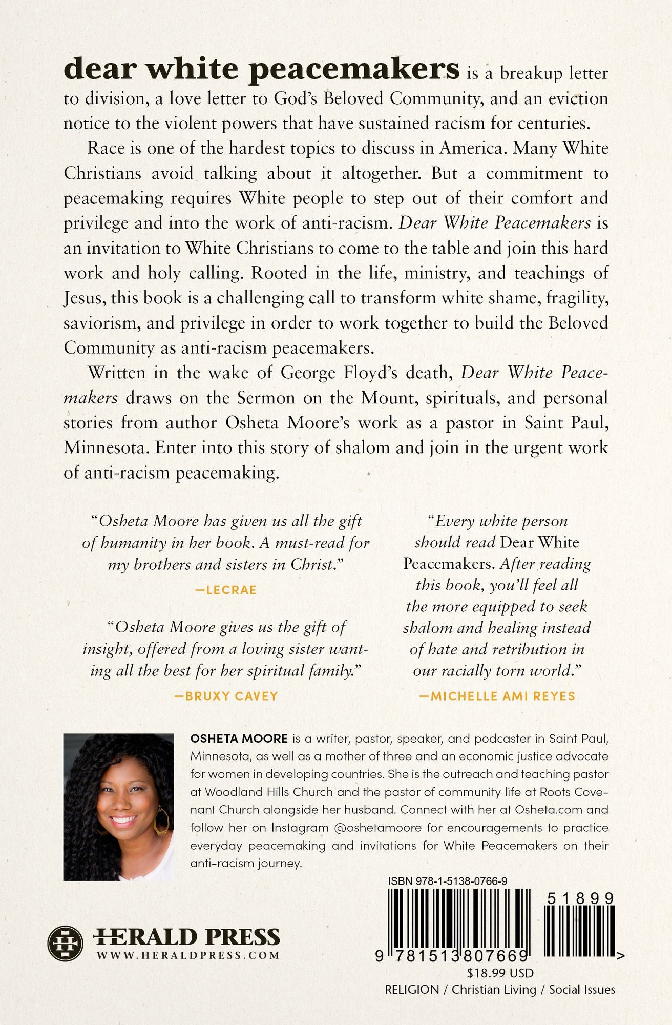 Race is one of the hardest topics to discuss in America. Many white Christians avoid talking about it altogether. But a commitment to peacemaking requires white people to step out of their comfort and privilege and into the work of anti-racism. Dear White Peacemakers is an invitation to white Christians to come to the table and join this hard work and holy calling. Rooted in the life, ministry, and teachings of Jesus, this book is a challenging call to transform white shame, fragility, saviorism, and privilege, in order to work together to build the Beloved Community as anti-racism peacemakers.