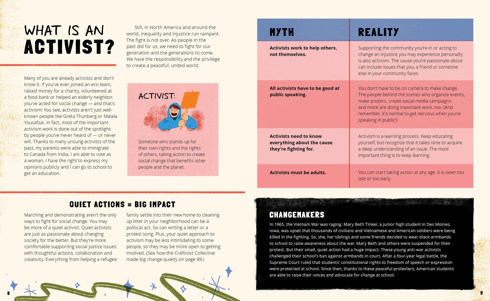 Here’s the definitive handbook for young activists who want to make a difference but don’t know where to begin. It covers everything from choosing a cause and doing the research, to deciding on a goal, and then making a plan to get it done. Along the way, readers will encounter loads of practical tips on handling specific tasks, like creating a petition, and larger responsibilities, like leading a team. There are also important discussion about essential topics such as intersectionality, privilege and allyship. Written in the encouraging, friendly tone of a peer, this book is sure to inform and inspire budding activists – and open their eyes to what’s possible!