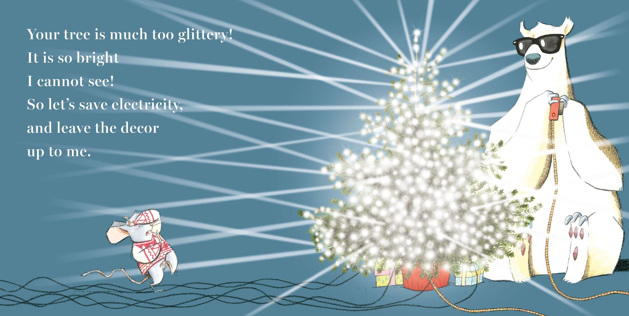Bear and Mouse have finally overcome their differences and are living together in perfect harmony . . . until it’s time to decorate the Christmas tree! Bear wants dazzling lights, while Mouse prefers gigantic ornaments. Did Mouse just put a manatee on the top of the tree? After Bear attempts an upside-down tree, it looks as if Christmas might be ruined for the pair. But maybe, just maybe, Bear and Mouse can reach a compromise in the spirit of the season.