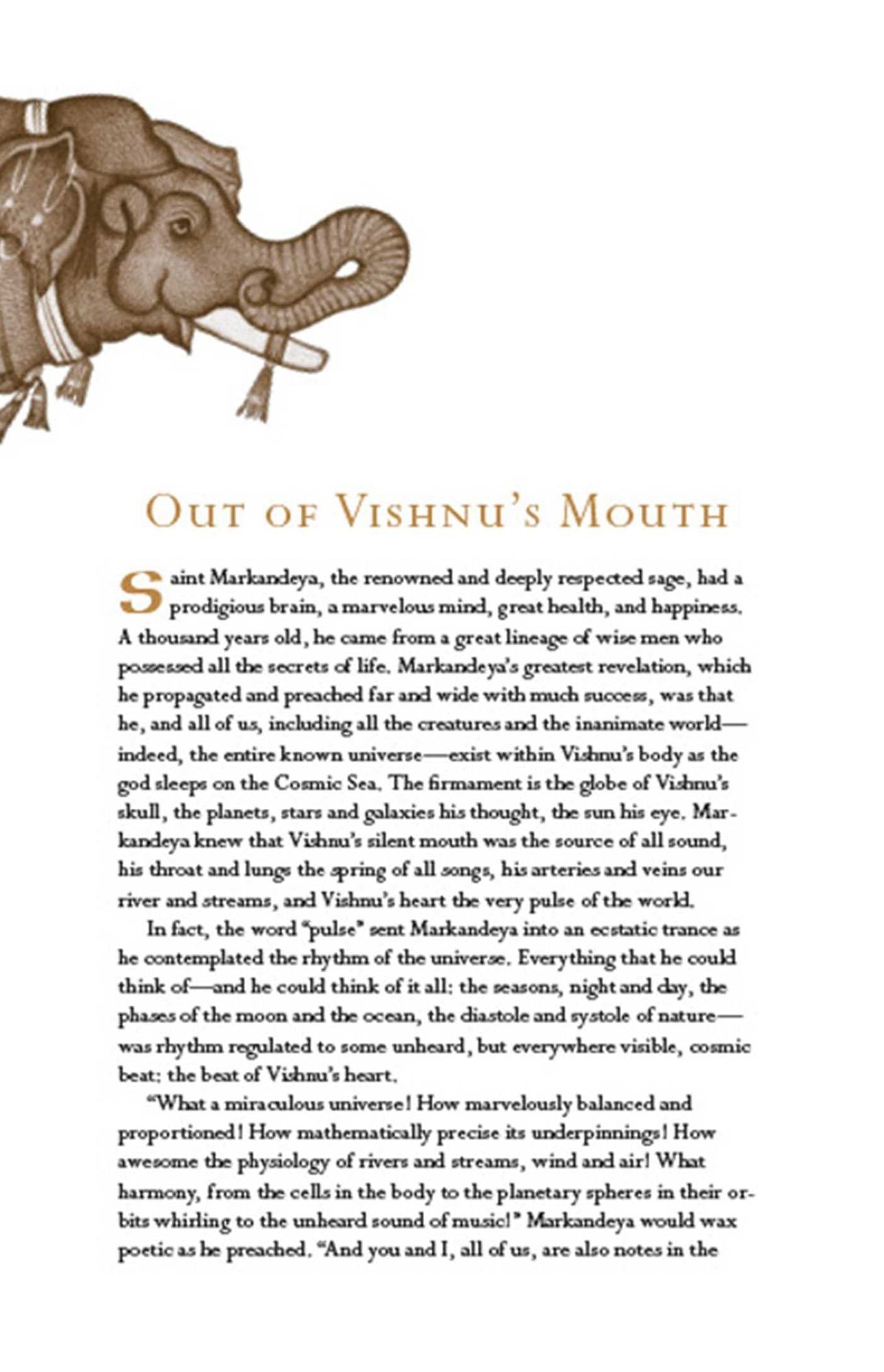 King Kubera was the greediest man in the world. Hated and feared by many, he schemed to win the love of the beautiful goddess Parvati . . . but learned an important lesson when he invited her elephant-headed son Ganesha over for lunch one day . . . So goes one of the many delightful tales in this decidedly grown-up book of traditional Indian stories, retold for the modern reader. Author Kamla Kapur is well known in her native India as a poet and playwright, and her connection to these age-old stories is the reverent yet individualistic one we might expect from someone whose introduction tells of her hometown, where naked, dreadlocked holy men speed about on motorbikes. To collect these stories, Kapur relied on ancient sacred texts, modern scholarship, and chance encounters with interesting people who just happened to know a really good one about this time that Vishnu sank into the ocean, was incarnated as a pig, and had a really wonderful time. Like myths around the world, these are teaching stories that offer both a window into a fascinating culture that has endured for thousands of years, and a code for living that can be applied to the modern world.