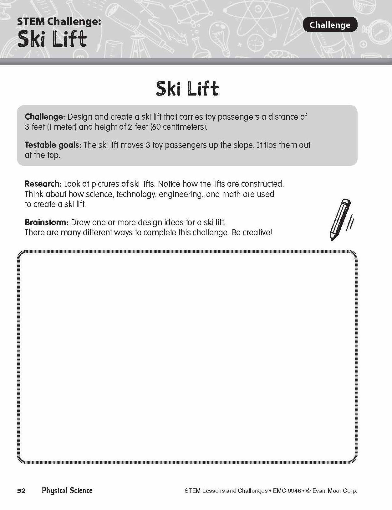 - A STEM challenge overviewIntroduces the specific task and goal of each STEM challenge and provides space for students to brainstorm.