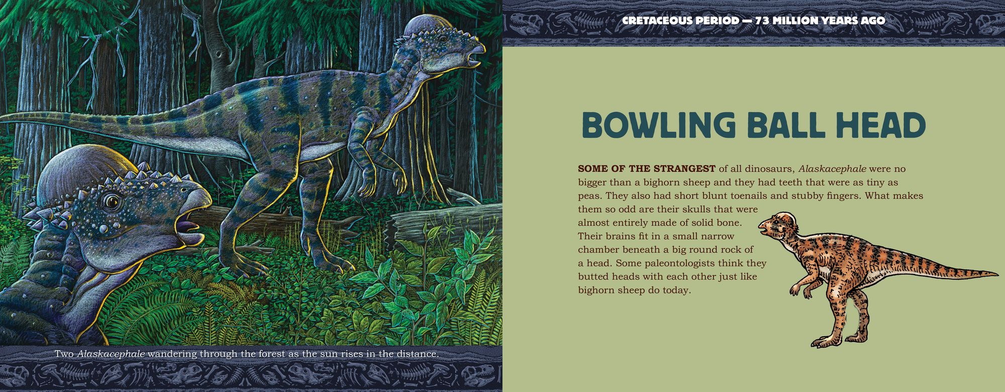 This engaging richly illustrated picture book is the perfect introduction to Alaska’s dinosaurs. It opens with an irresistible, jam-packed map of Alaska fossils, and then proceeds through a timeline of prehistoric creatures that inhabited ancient Alaska’s oceans and forests.
