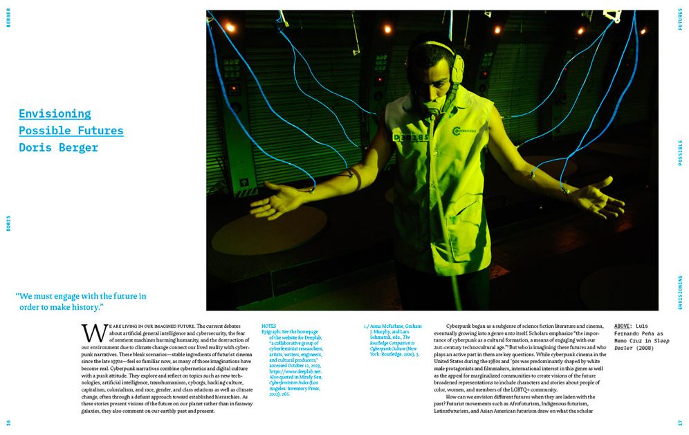 Cyberpunk: Envisioning Possible Futures through Cinema examines the global impact and lasting influence of cyberpunk on cinema culture. Through rarely published behind-the-scenes photographs, film stills and concept art, the book spotlights iconic cyberpunk films such as Blade Runner, Tron and The Matrix; foundational animated features like Akira and Ghost in the Shell; and more recent releases such as Sleep Dealer, Pumzi, Night Raiders and Neptune Frost. More than 20 case studies written by critics, historians and filmmakers offer new perspectives on these films and their legacies. The book also features an in-depth introduction by curator Doris Berger; an essay by communications scholar Carlen Lavigne that discusses the genre’s 20th-century literary origins and the new, global directions it has taken in the 21st century; and an interview with filmmakers Danis Goulet and Wanuri Kahiu that reflects on the interplay among cyberpunk, Afrofuturism and Indigenous futurism.