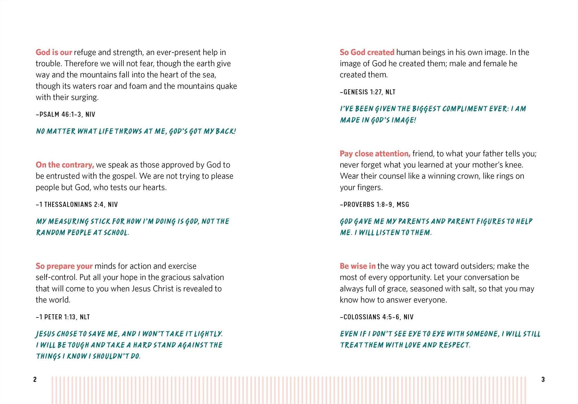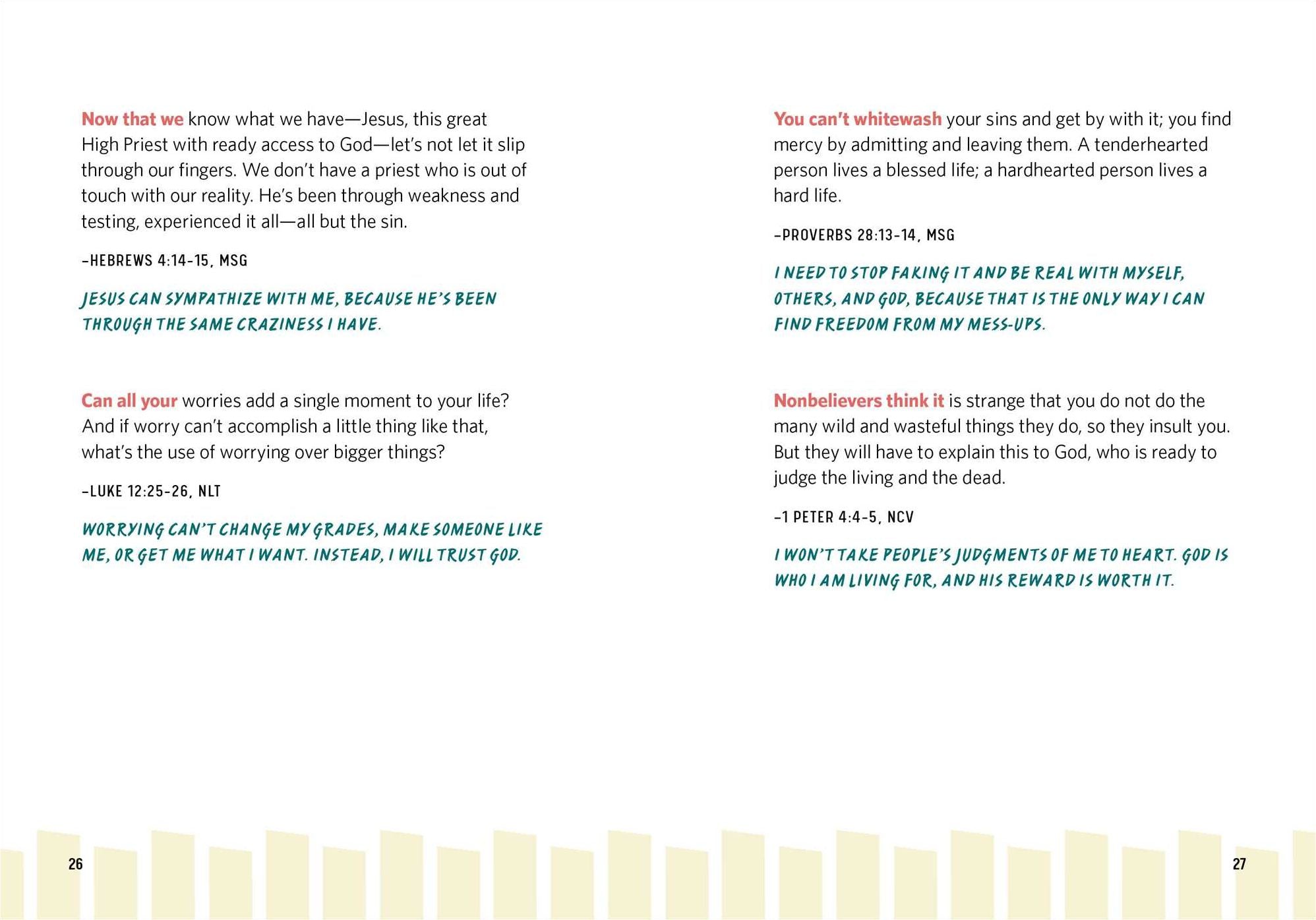 - A year of prompts—Find a prompt for each day of the year that includes a quote from the Bible and a simple explanation that helps teens understand it.