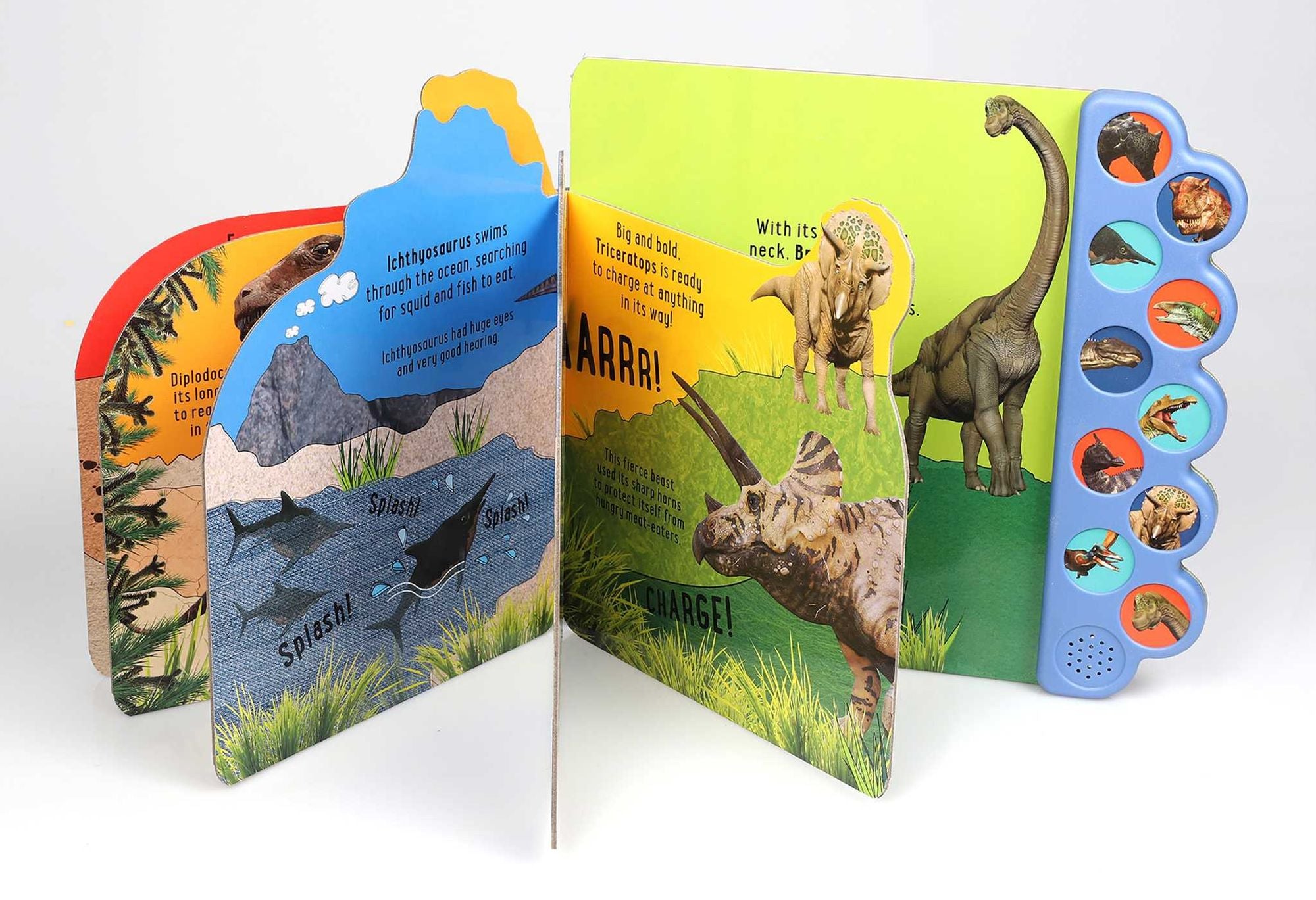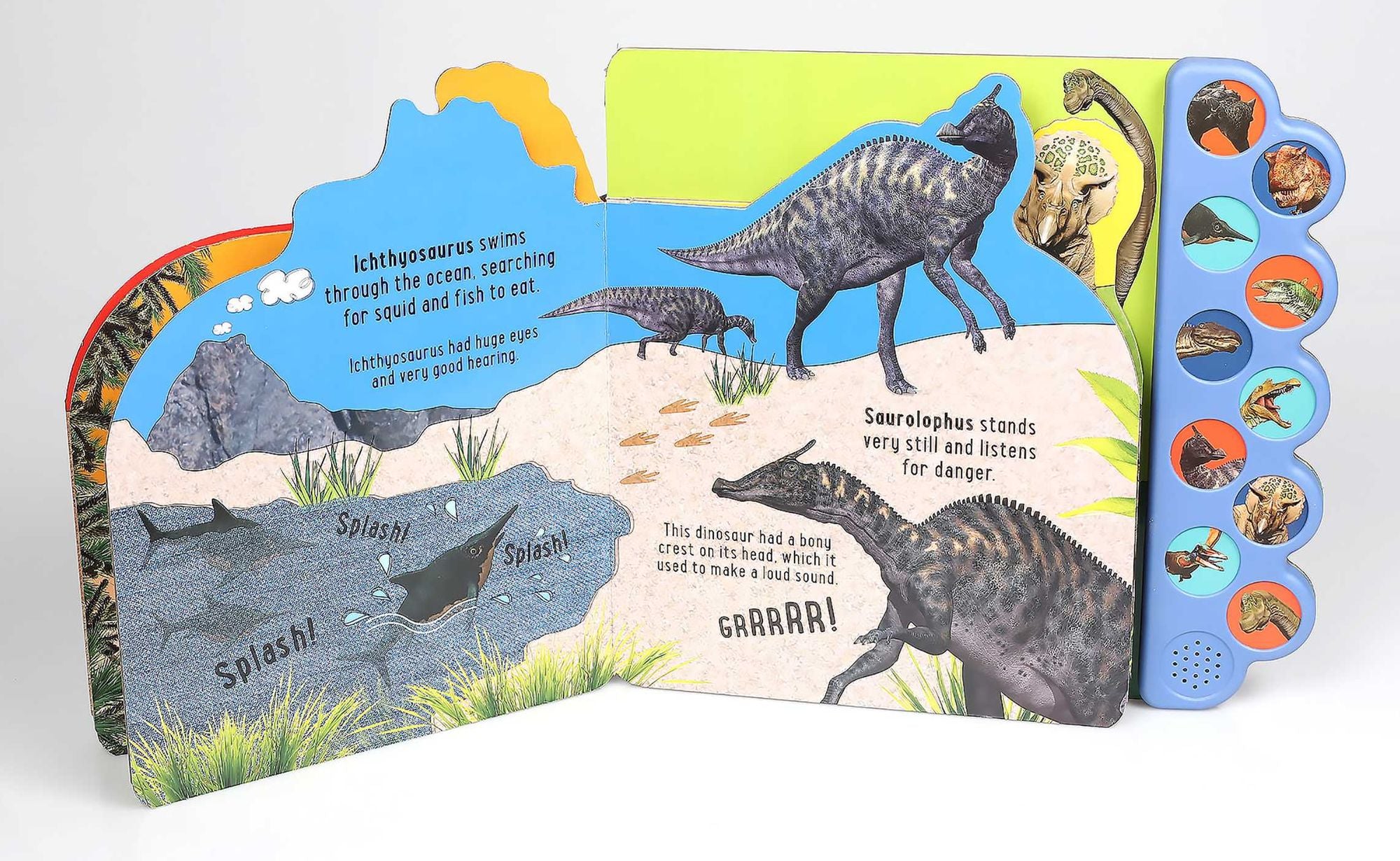 With 10 cool sound buttons, fun facts, full-color illustrations, and much more, this Discovery sound-and-reference book is a unique way for kids to learn about dinosaurs. Kids will love hearing the sounds of the various dinosaurs in this vibrant and interactive book.