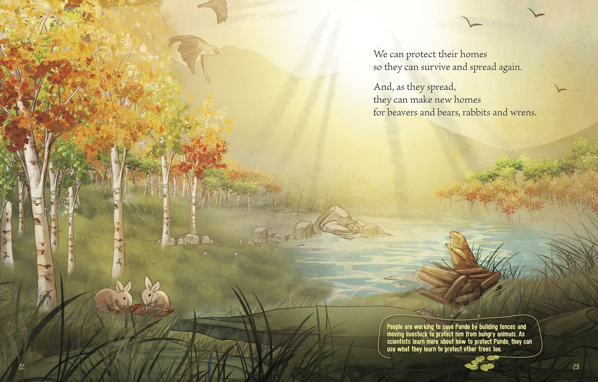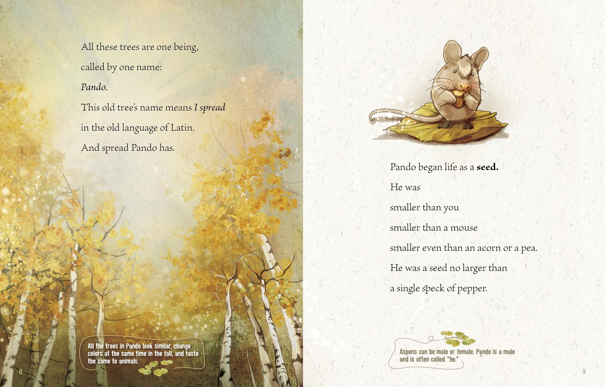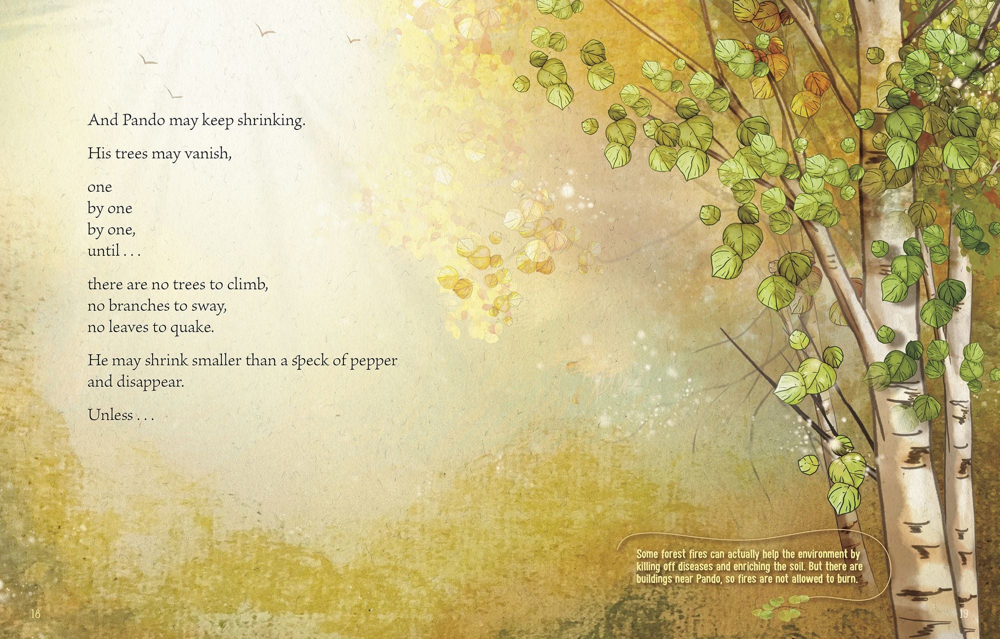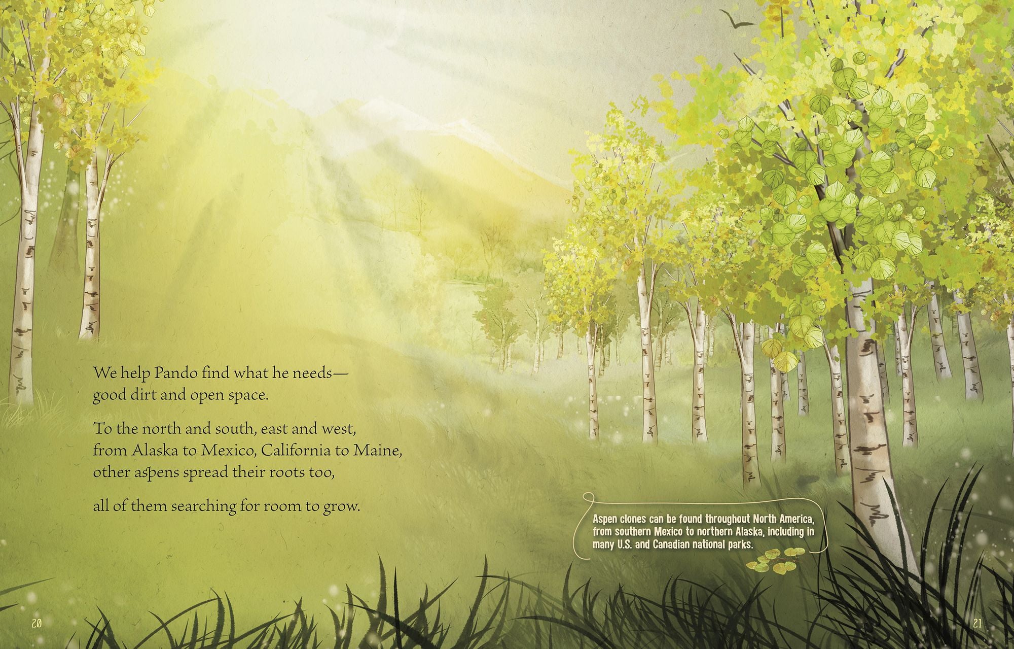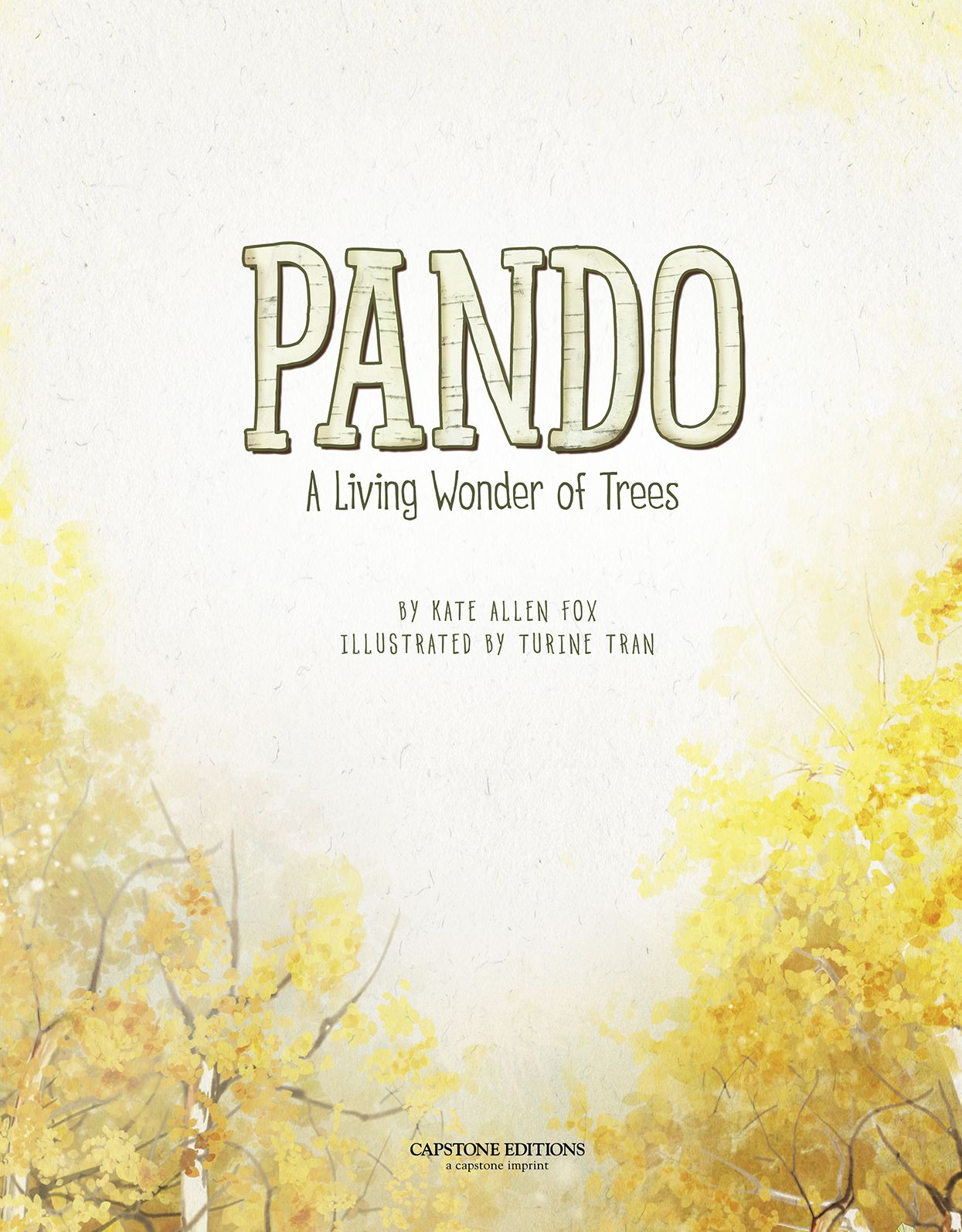 Pando is an inspiring tribute to a Utah grove of quaking Aspen trees connected by their roots to form one of the world's oldest and largest living things. Author Kate Allen Fox engages readers’ senses to help convey the vastness of Pando, the challenges it faces, and how we all can be part of the solution. With lyrical poetry, Fox summarizes the science, action, and compassion needed to save this wonder of nature.