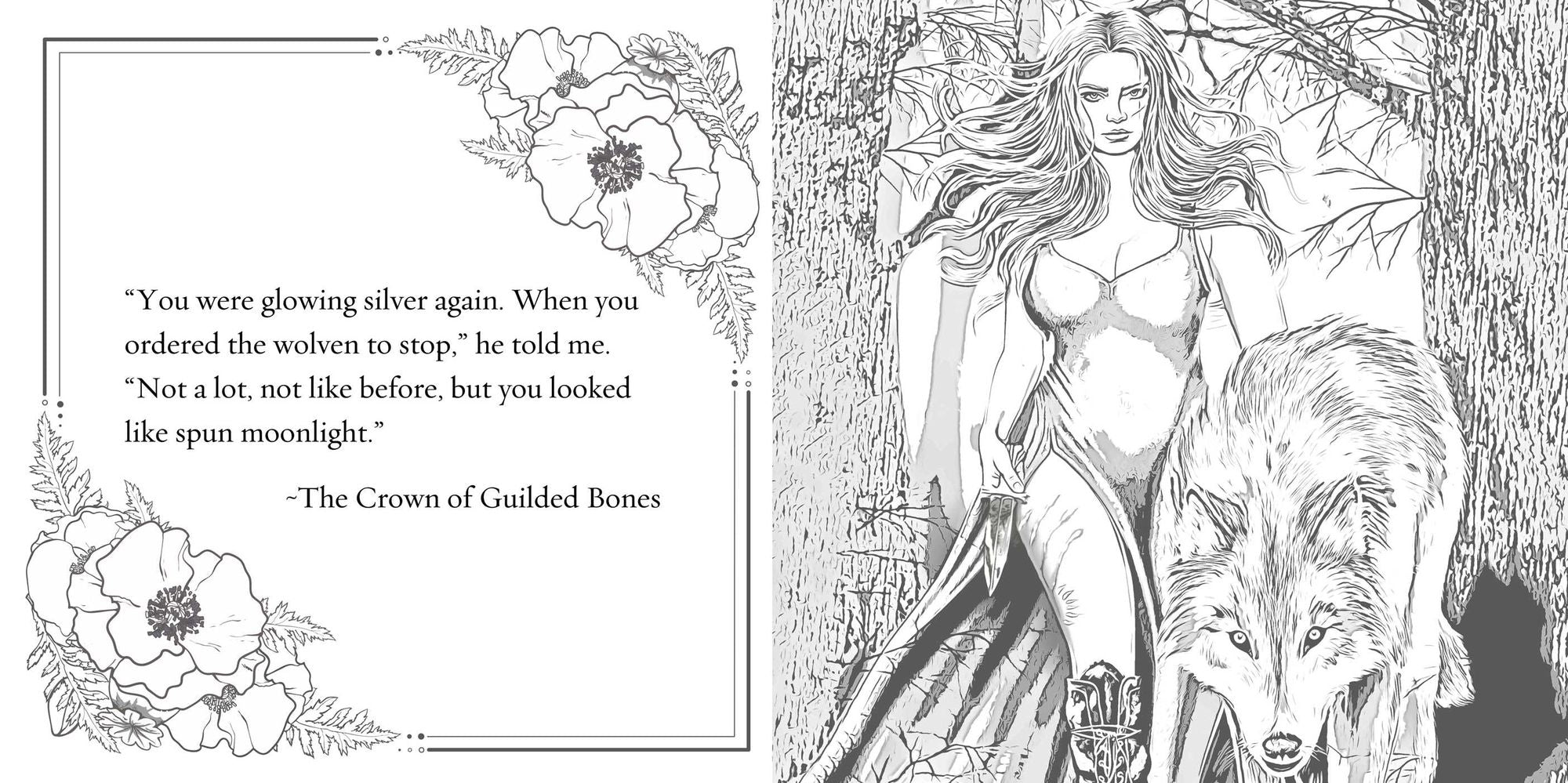 From the desperation of golden crowns to the awakening of the Harbinger and the Bringer of Death and Destruction, this official coloring book invites you to journey through the captivating epic that began with a Maiden and a golden-eyed guard.