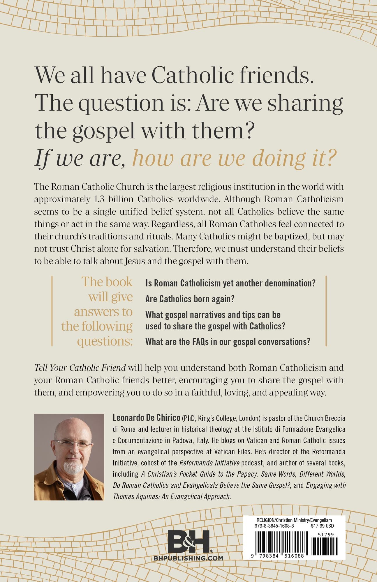 Tell Your Catholic Friends will help you understand both Roman Catholicism and your Roman Catholic friends better, encouraging you to share the gospel with them, and empowering you to do so in a faithful, loving and appealing way.