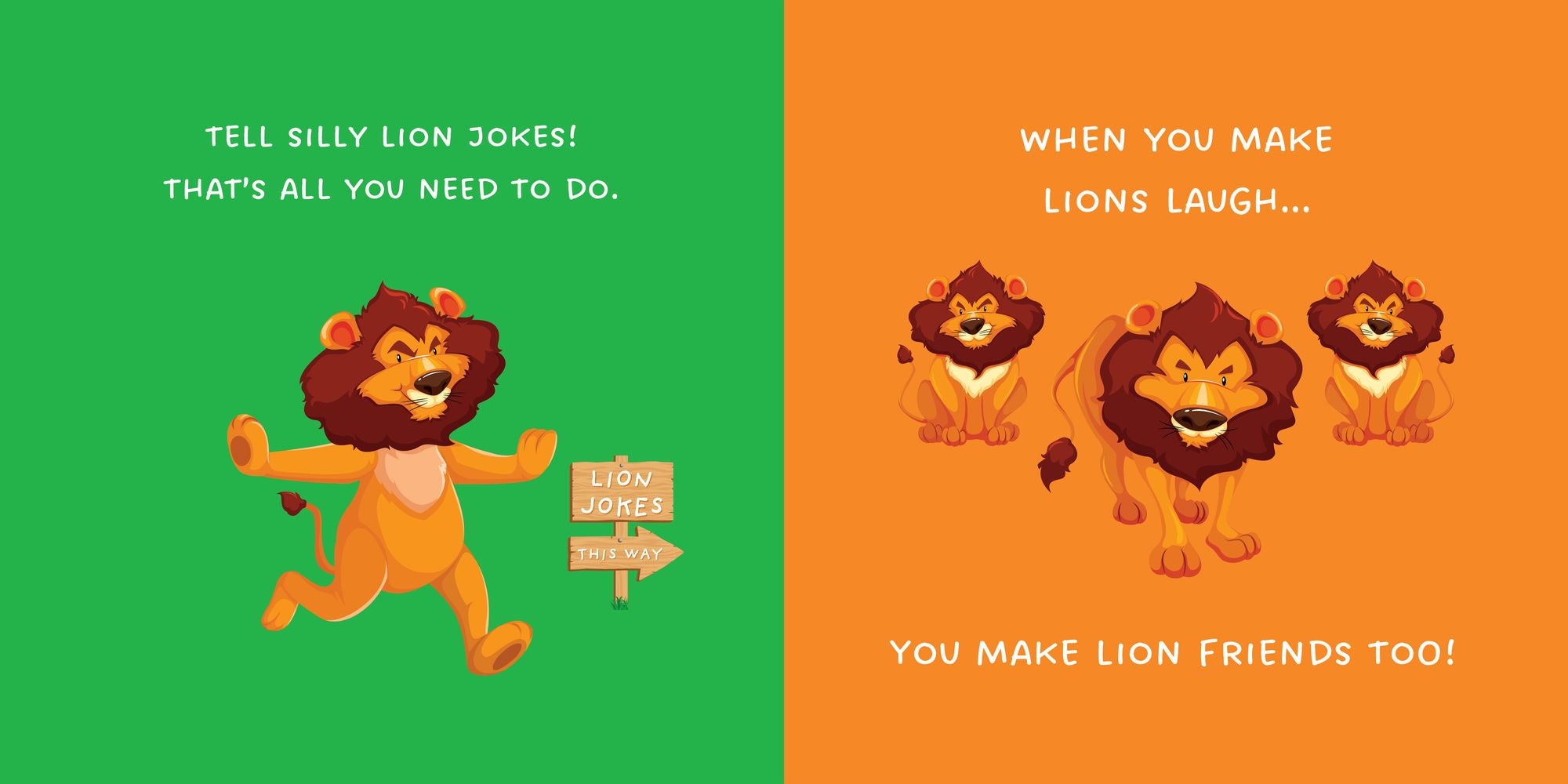 Lions take PRIDE in their sense of humor, so if you want to make friends with a lion, you'll need some lion jokes to tell in the savannah! Get ready to giggle with this book of hilarious, lion-themed jokes for kids. It's full of silly illustrations, animal puns, and easy-to-read words that make it a blast for early readers and joke-lovers of all ages!