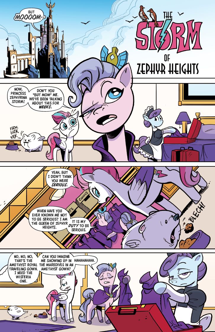 A storm is brewing! And with Queen Haven away, the Mane 6 are the only ones keeping Zephyr Heights from being blown off its mountaintop.