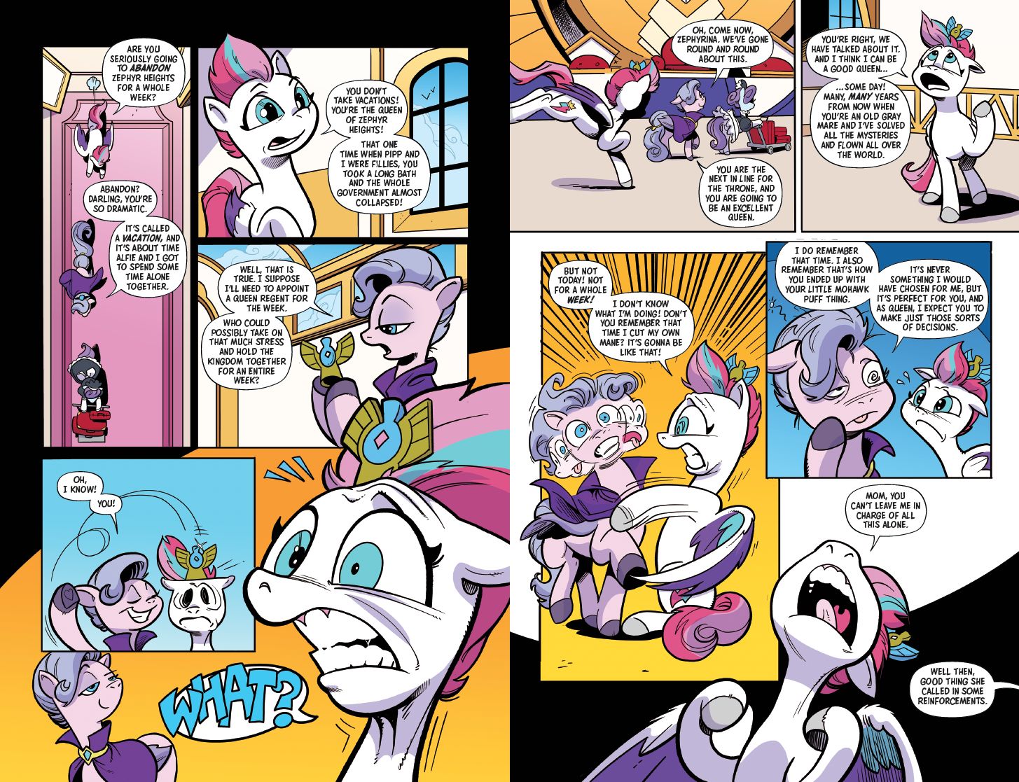 For the first time anyone can remember, Queen Haven is taking a vacation. She’s decided to leave Zipp in charge of the royal palace in Zephyr Heights while she’s gone, and as the crown princess, Zipp is confident she can handle the responsibility. She’s not great at ceremony, but nothing really dangerous ever happens in Zephyr Heights anyway, right? Just to be safe, she recruits her sister Pipp and their friends Sunny, Hitch, Izzy, and Misty to come along. And it’s lucky they did, because disaster is about to strike the capital!