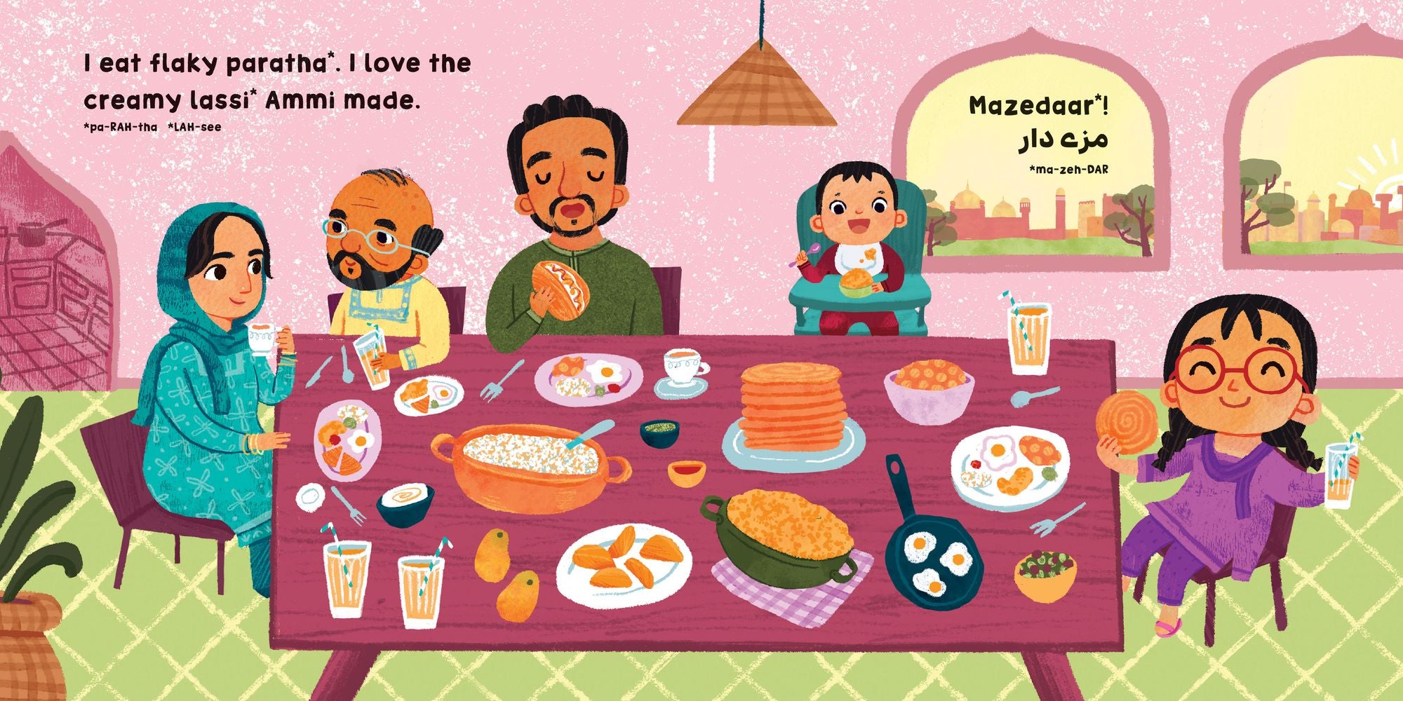 Subah bikhair! Spend a day in Pakistan starting with prayers at sunrise, then enjoying flaky paratha and creamy lassi before a trip to the market by train. Even learn words in Urdu with pronunciation guides throughout the story.