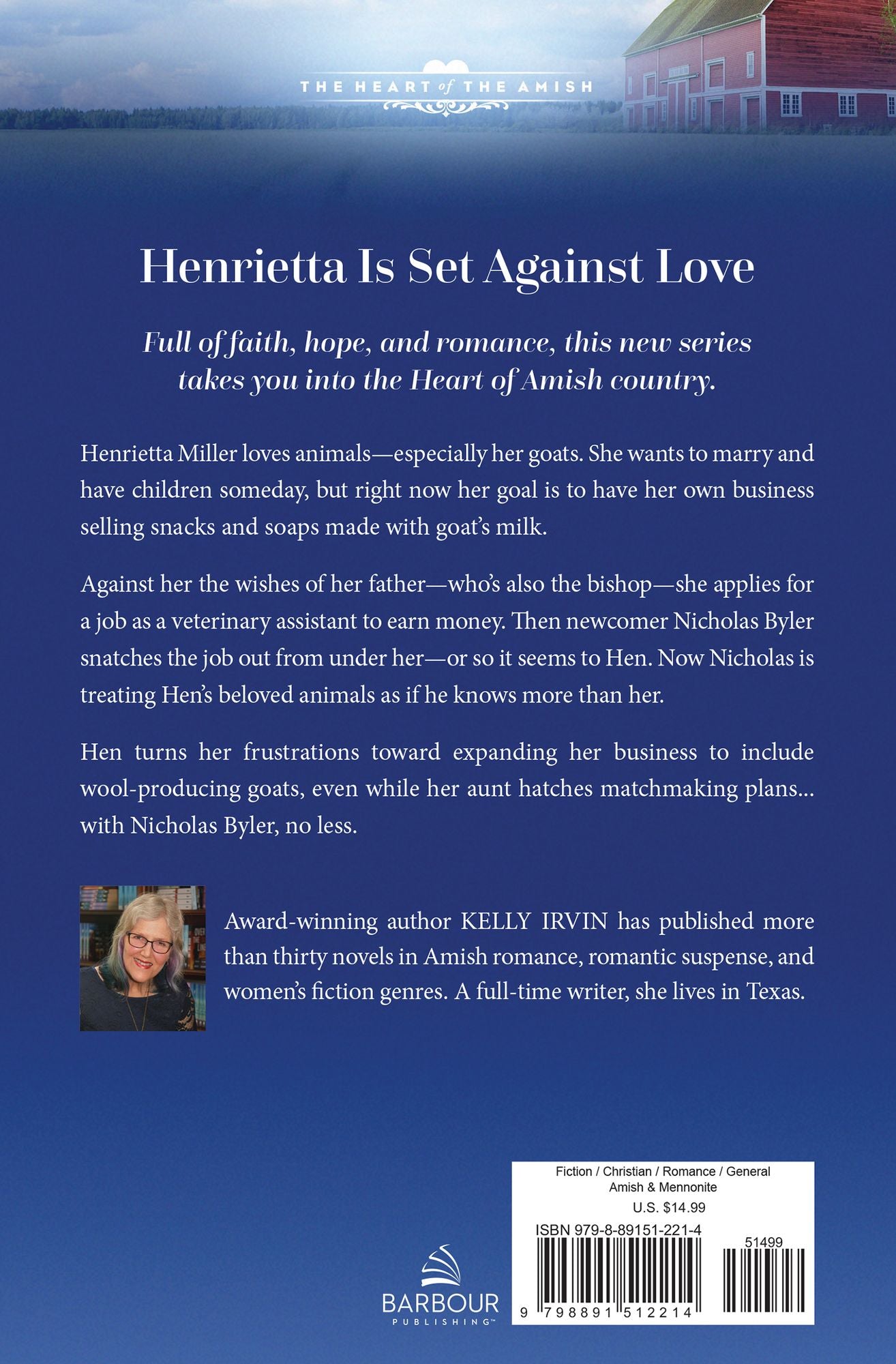 Henrietta Miller loves animals—especially her goats. She wants to marry and have children someday, but right now her goal is to have her own business selling snacks made from goat's milk and goat's soaps. Against her the wishes of her fatherwho's also the bishop—she applies for a job as a veterinary assistant to earn money. Then newcomer Nicholas Byler snatches the job out from under her—or so it seems to Hen. Now Nicholas is treating Hen's beloved animals as if he knows more than her. Hen turns her frustrations toward expanding her business to include wool-producing goats, even while her aunt hatches matchmaking plans—with Nicholas Byler, no less.