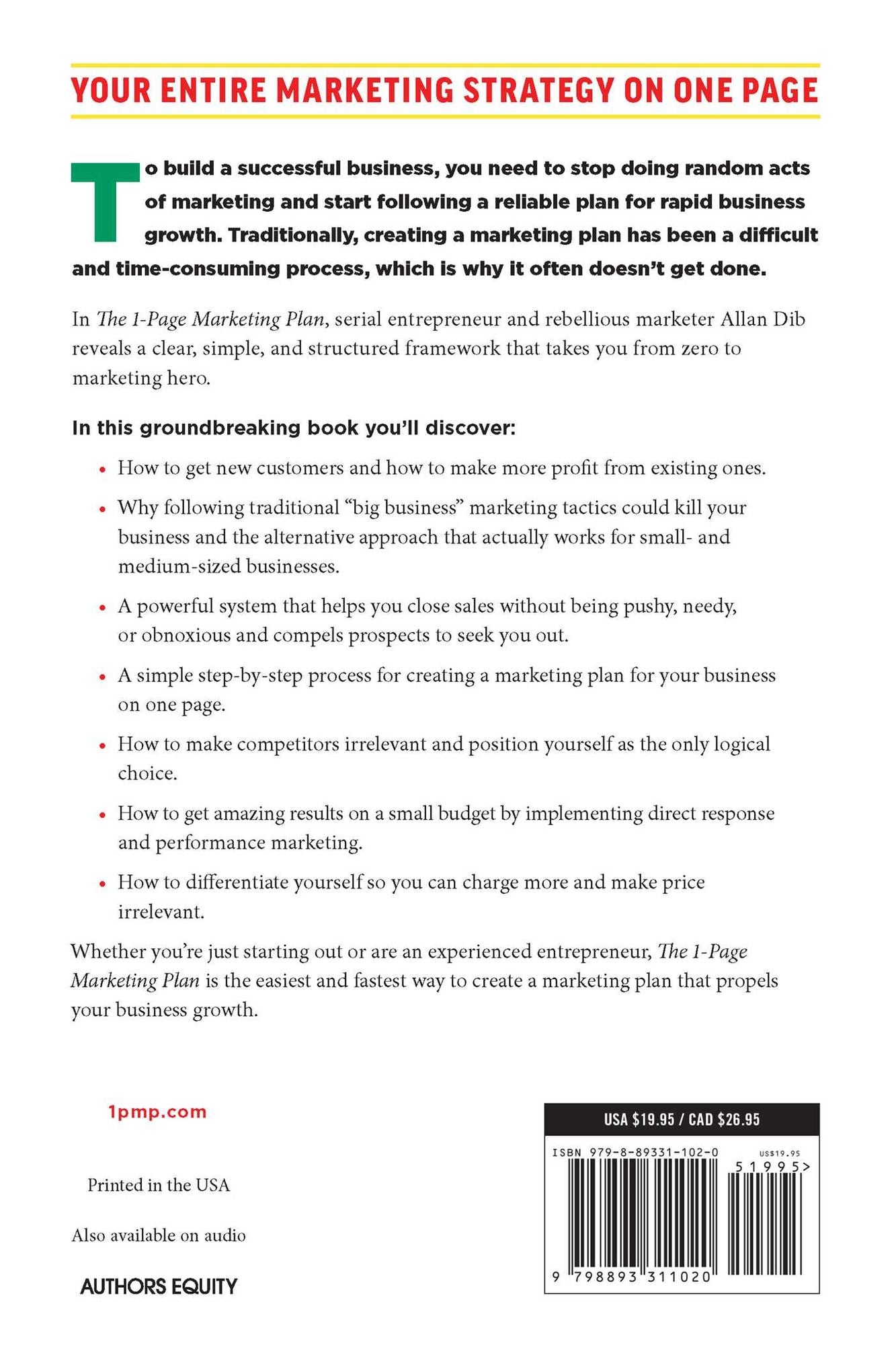In The 1-Page Marketing Plan, serial entrepreneur and rebellious marketer Allan Dib reveals a marketing implementation breakthrough that makes creating a marketing plan simple and fast. It's literally a single page, divided up into nine squares. With it, you'll be able to map out your own sophisticated marketing plan and go from zero to marketing hero.